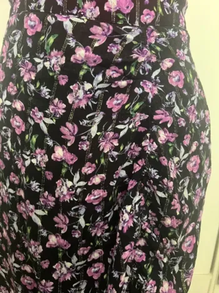 Jupe fleurie mi-longue violette et noire fils argentés Kiabi - photo numéro 5