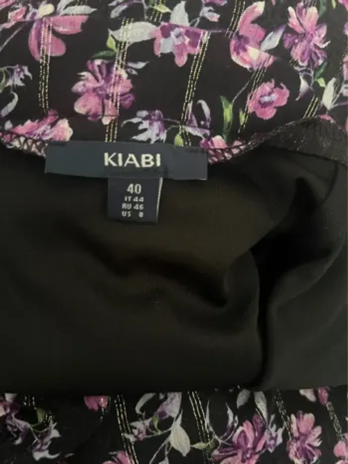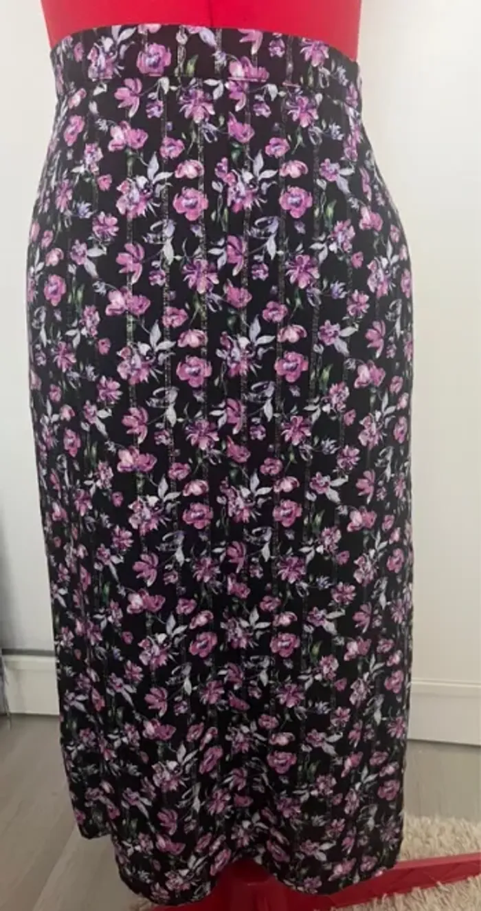 Jupe fleurie mi-longue violette et noire fils argentés Kiabi - photo numéro 1