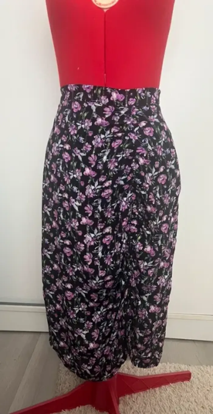 Jupe fleurie mi-longue violette et noire fils argentés Kiabi - photo numéro 3