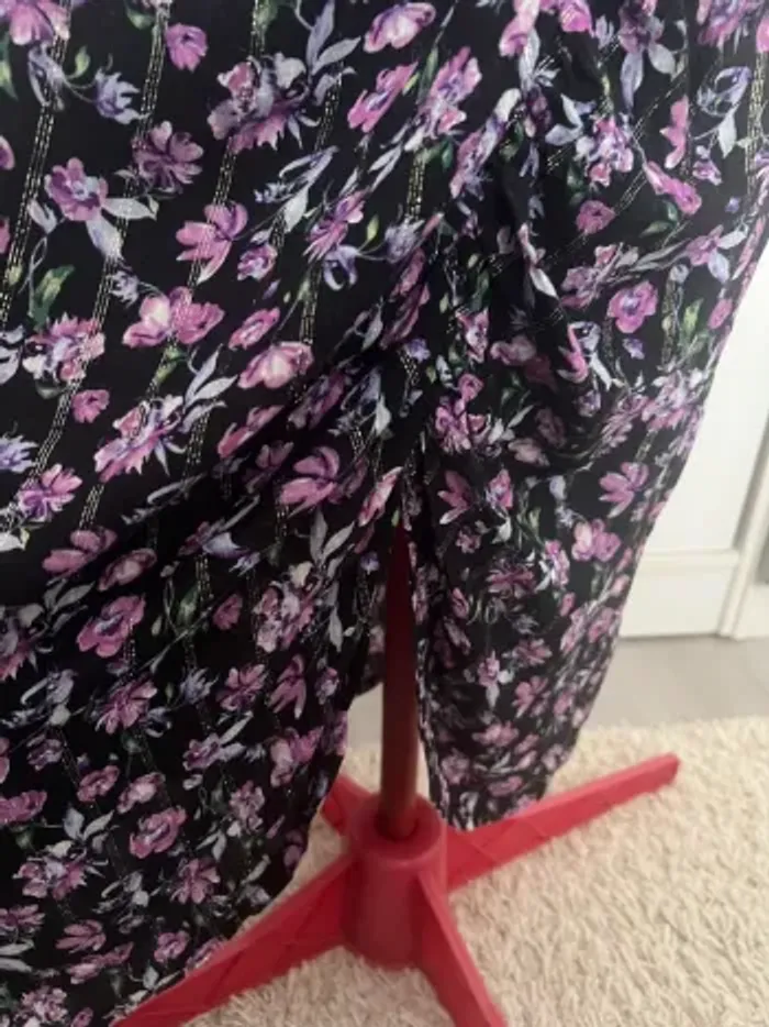 Jupe fleurie mi-longue violette et noire fils argentés Kiabi - photo numéro 6