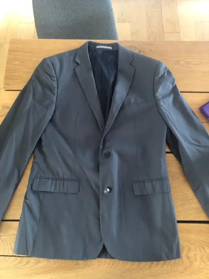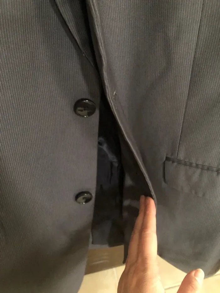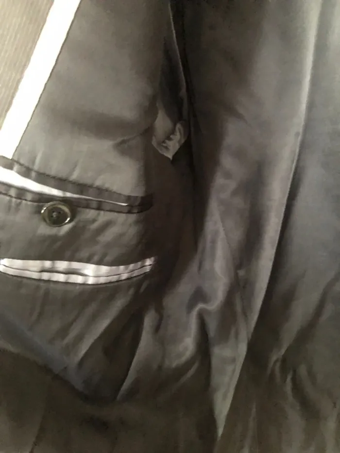 Parfait état 48 cm largeur épaule 63 cm longueur bras 73 cm longueur veste Gris rayé foncé et plus clair
