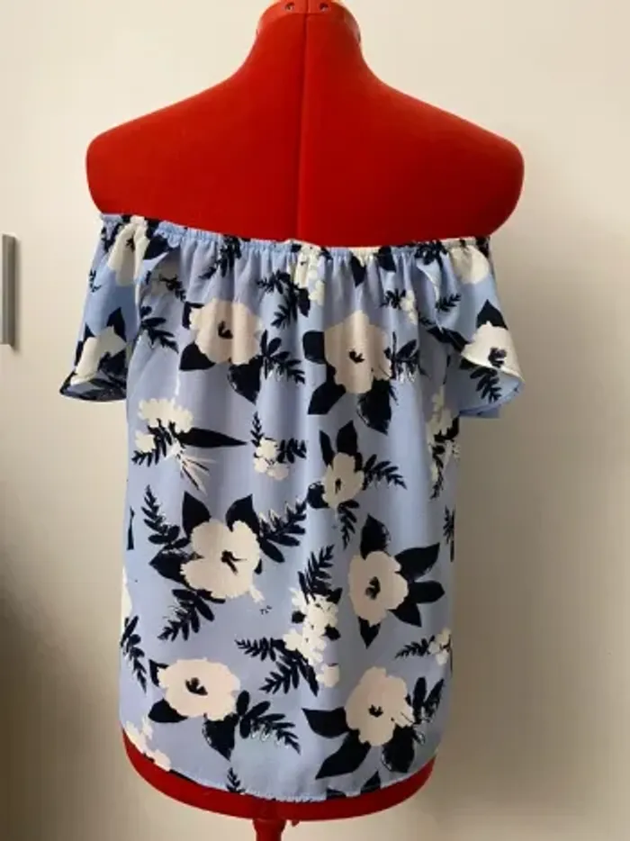 Blouse col bardot imprimé fleuri bleu Atmosphère - photo numéro 7