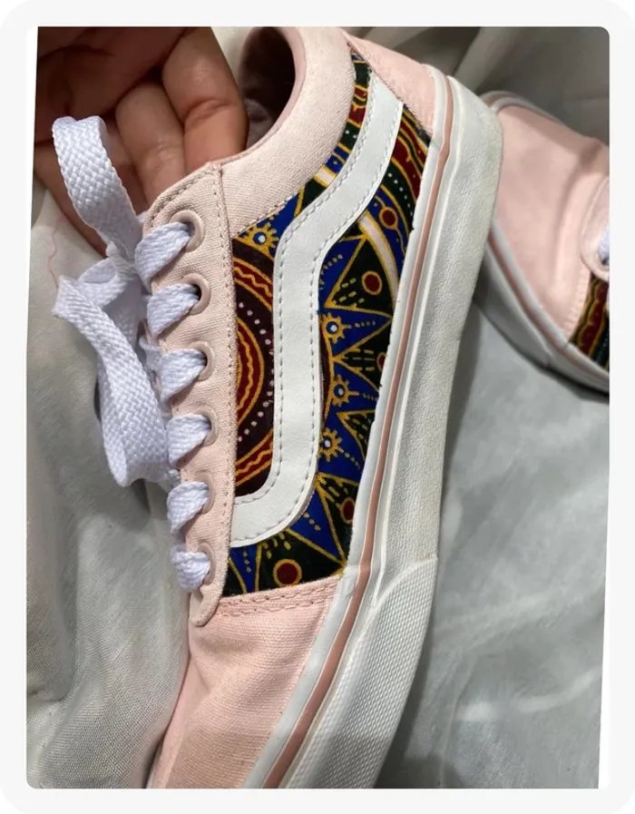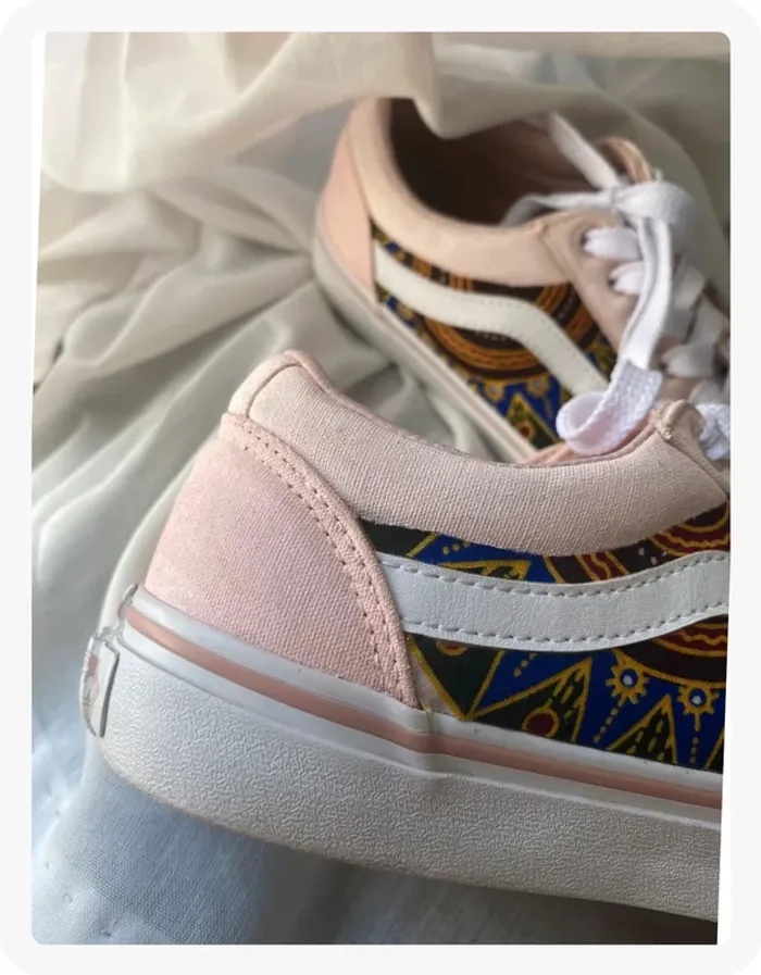 Portées quelques fois Custom à la main, peinture et tissu Modele unique Autres chaussures : #soniaysf4shoes #vans #vansoldskool #custom #customized #customisation #unique #limitededition #rose #rosepale #pink #unica #wax #waxaddict #waxafricain #waxafrica #tissuafricain #personnalisé #envoirapide #enviorapido #enviorapidoyseguro