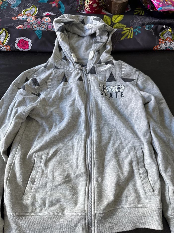 Veste jogging à capuche grise , taille 12 ans, très bon état mais ⚠️ peluches