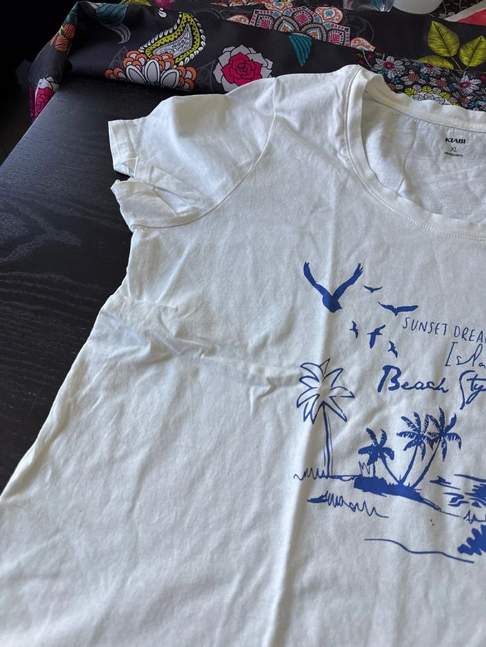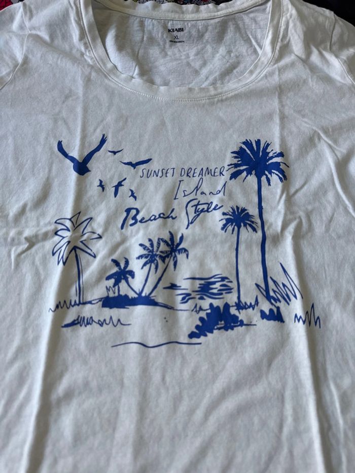 Teeshirt blanc et bleu taille xl 46/48 Kiabi en très bon état