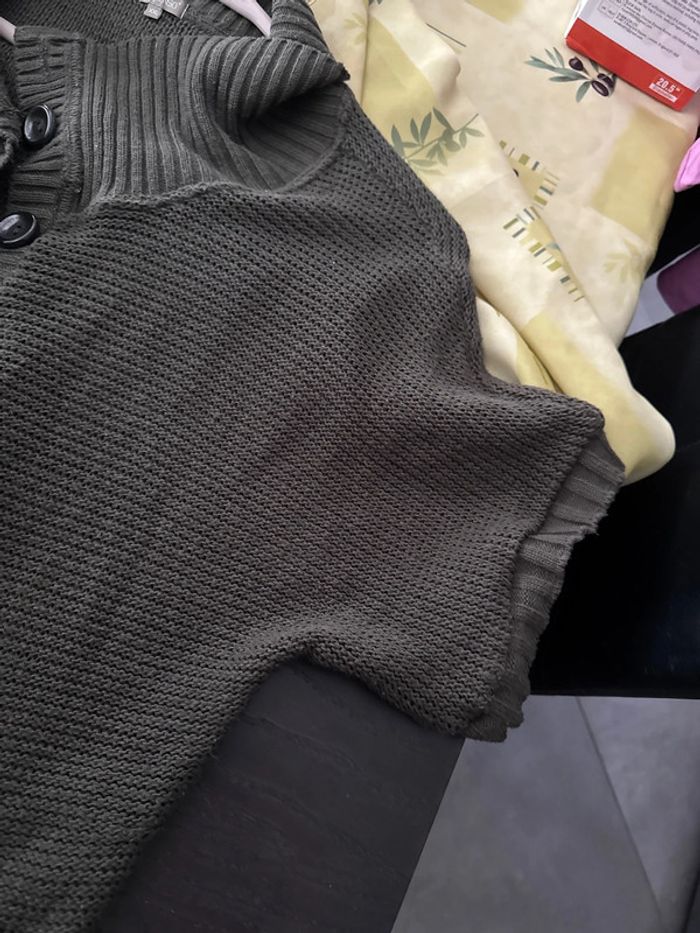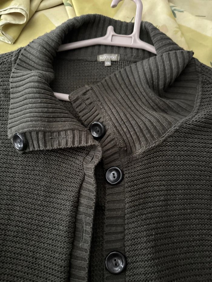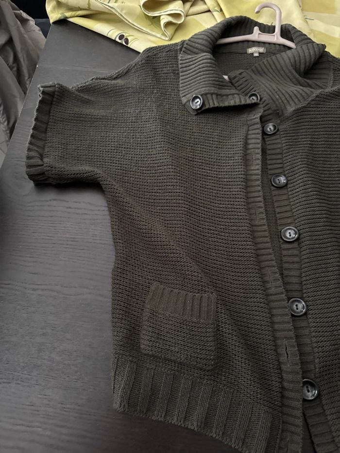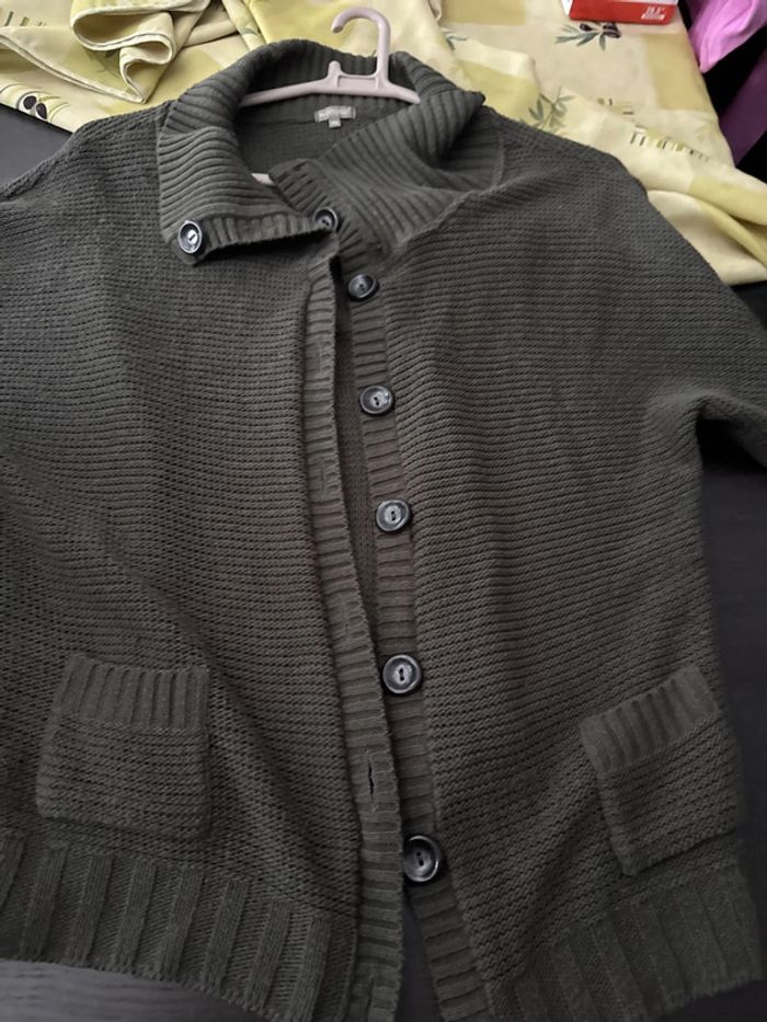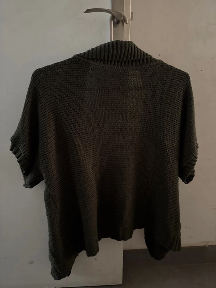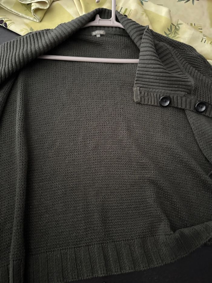 Veste laine grande taille XXL kaki , manches courtes chauves souris larges , avec boutons et poches Veste demi saison In extenso Bon état car porter plusieurs fois peu avoir des peluches