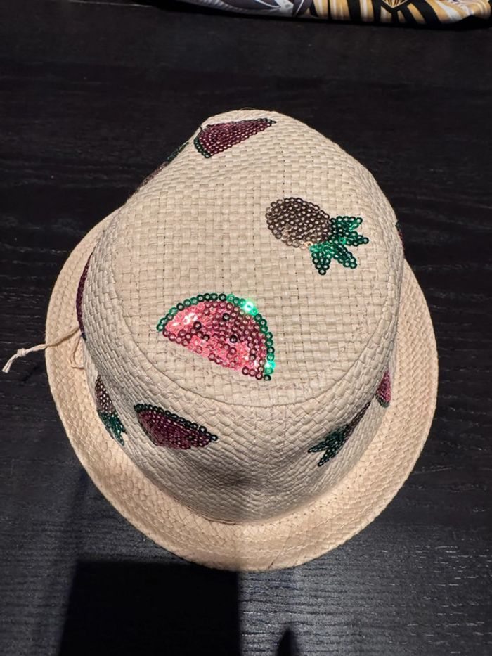 Chapeau 👒 beige/crème de HetM, fille, avec fruits en déco, taille 110/116