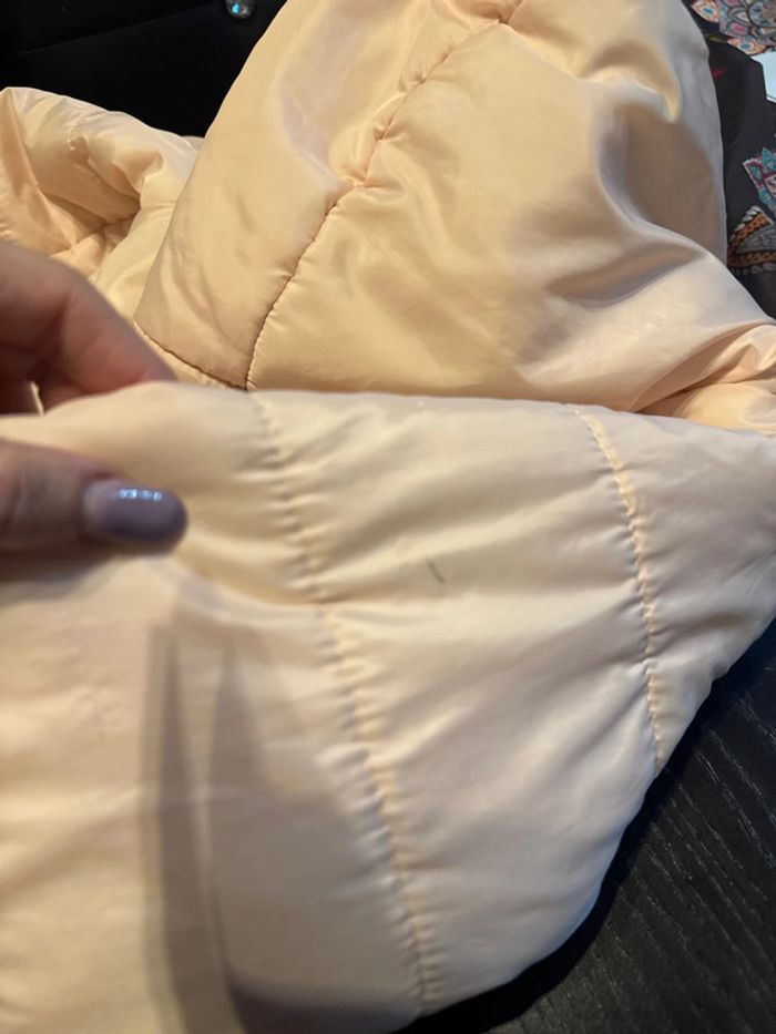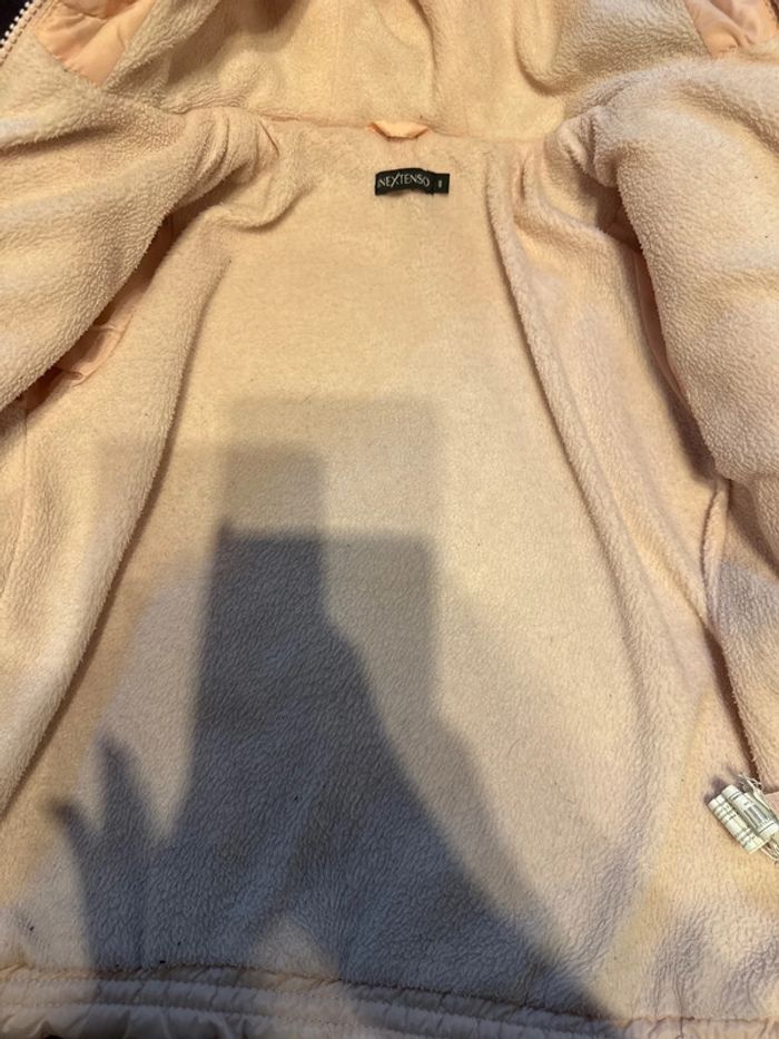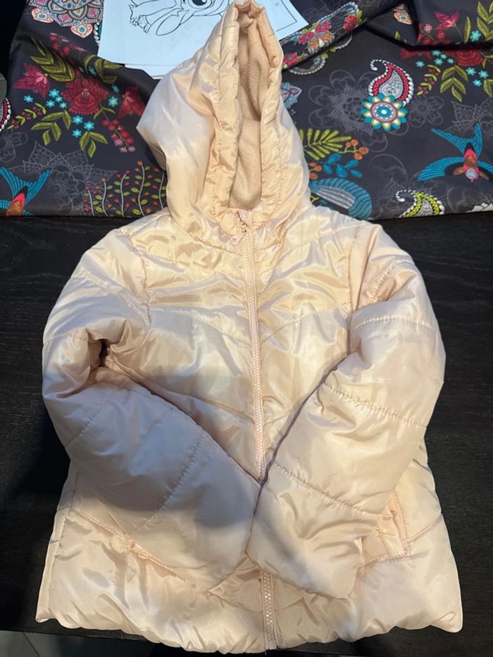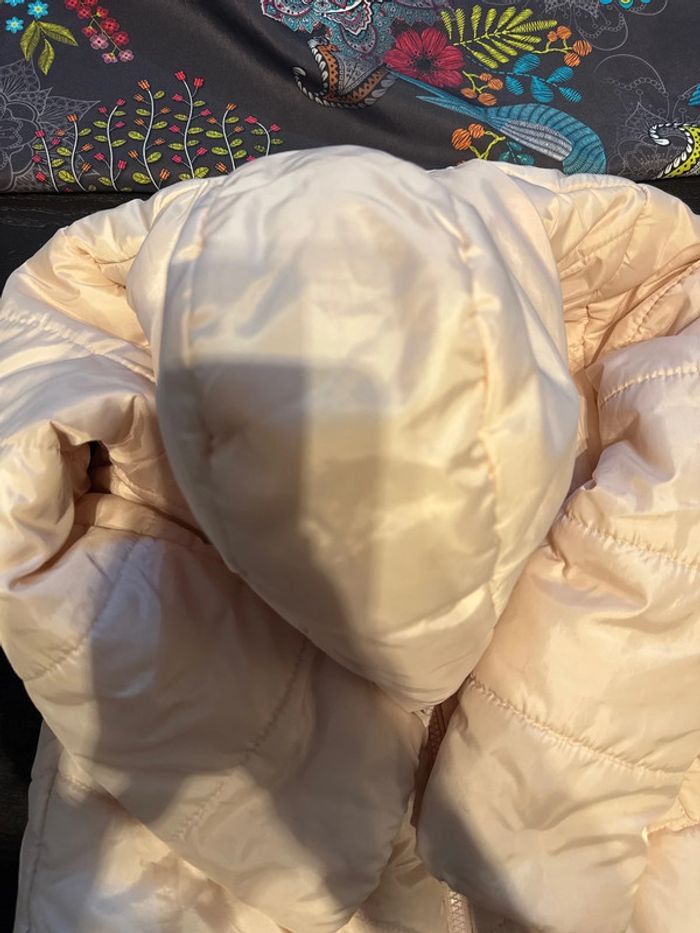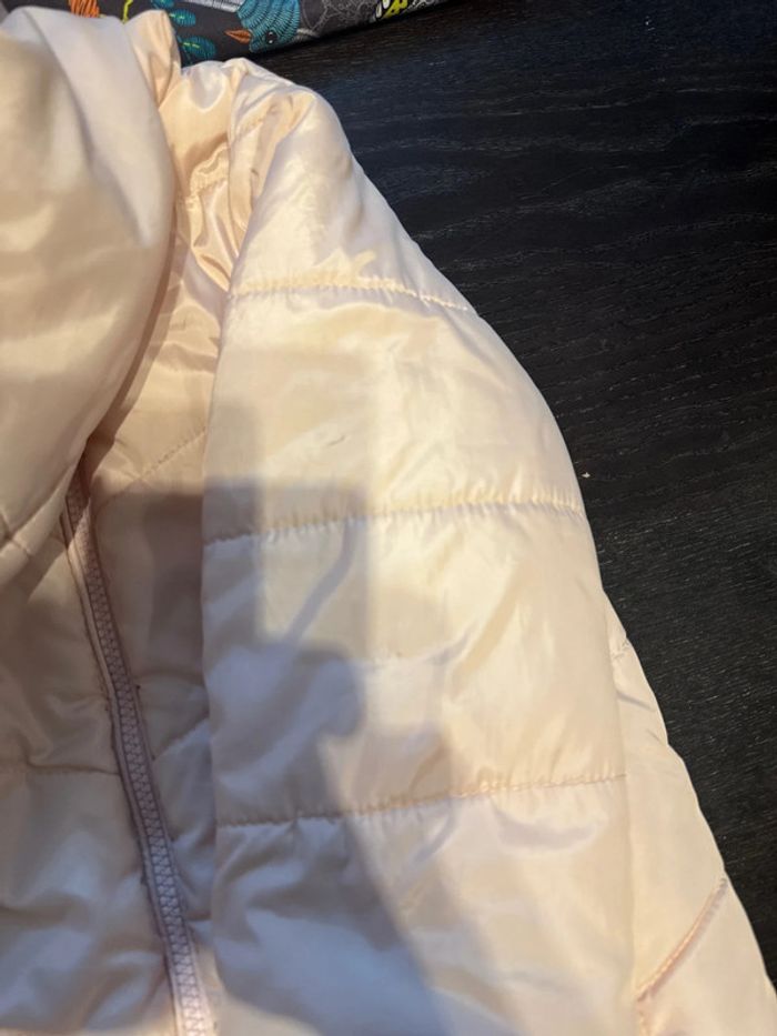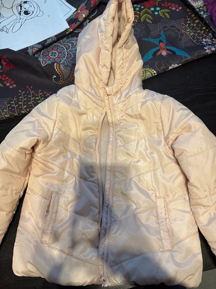 Doudoune rose pale fille à capuche , molletonné à l’intérieur, très bon état , mais peluches à l’intérieur car porter et 1 trace du stylo et un Leger accro en dessous
