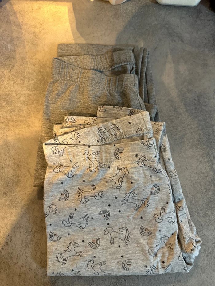Leggings fille 12 ans , Kiabi eco-conception, 1 gris chiné mis légèrement des traces entre jambes (photos) et le licorne neuf