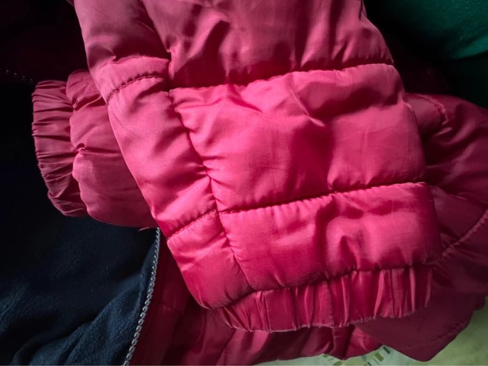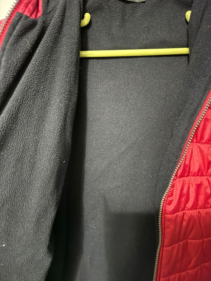 Doudoune à capuche molletonné intérieur, rouge à fermeture éclair fonctionnelle , taille 14 ans, in extenso, très bon état mais peu présenter des marques d’usure au niveau des manches voir photo a été porté