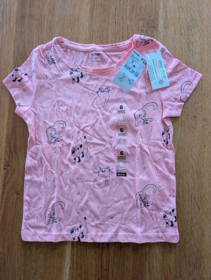 Tee-shirt rose motifs chat 6 ans neuf avec étiquette