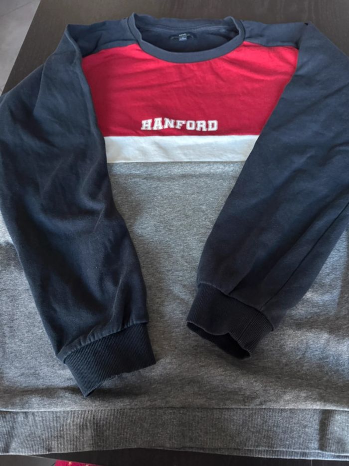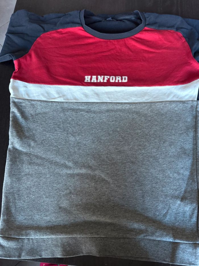 Pull tricolores, taille S ou 16 ans, Kiabi, bon état général mais a été porté plusieurs fois, peu pelucher par endroit et légèrement décolorés sur le col dernière photo. Sinon très bon état mais je le mets en bon état