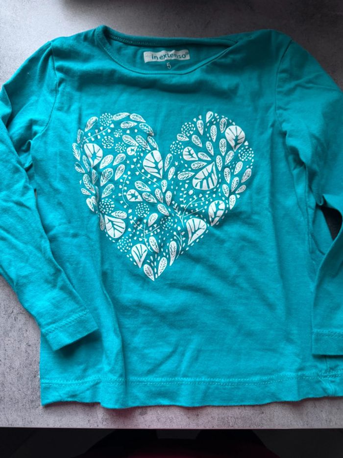 Pyjama 2 pièces, manches longues, taille 5 ans, in extenso, très bon état, turquoise avec cœur devant