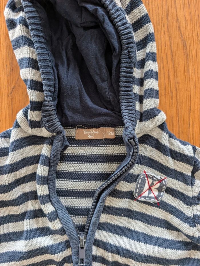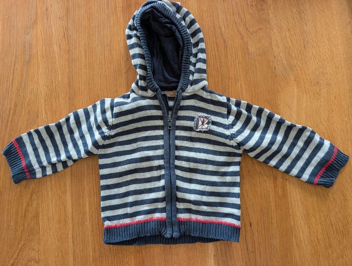 Gilet zippé rayé marine 12 mois - photo numéro 1