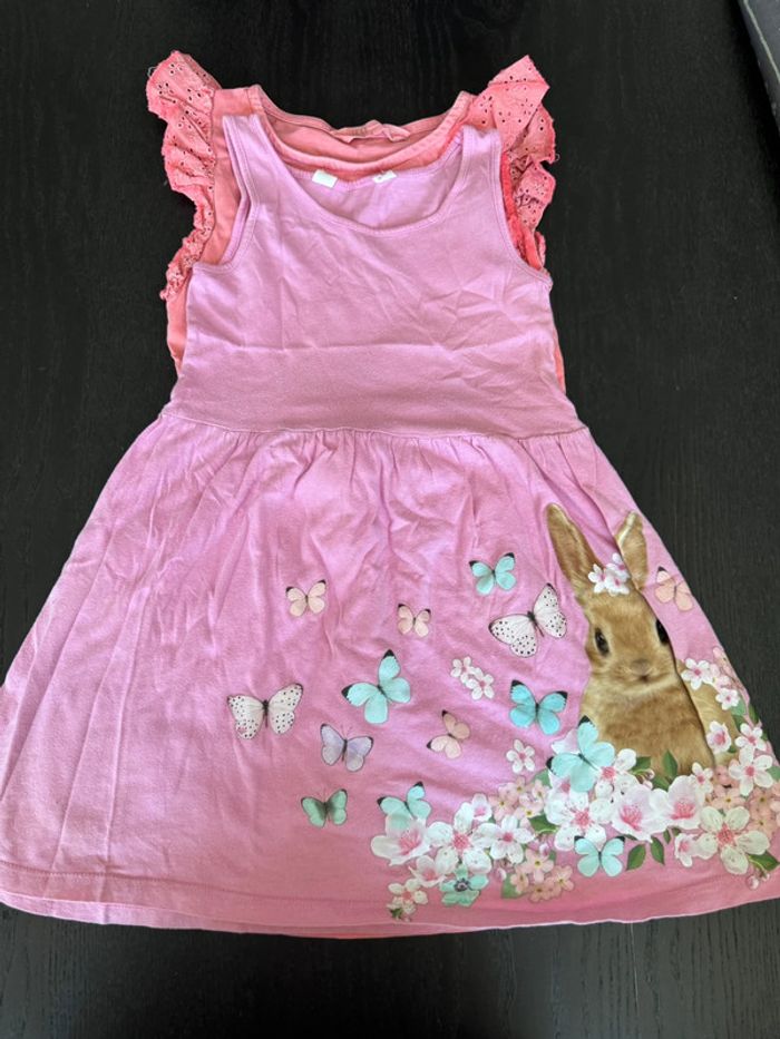 2 robe HetM , 1 rose chiné avec poches devant et 1 lapin .🐰. Taille 2/4 ans