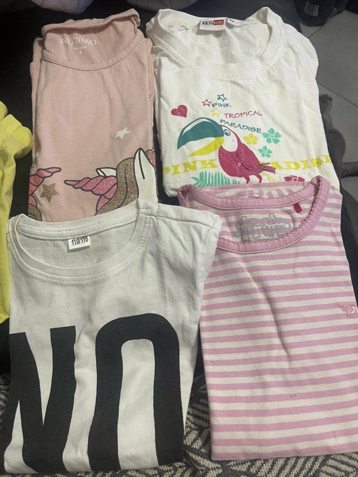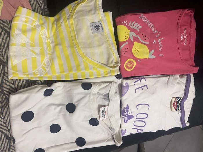 Lot de 12 tee-shirts le tout en bon état et certain très bon état. Différentes marques : Kiabi , in extenso,lee Cooper, tape à l’œil , petit bateau Attention ⚠️ 2 tee-shirts 6/7 ⚠️ le jaune esprit et le Blanc no princesse