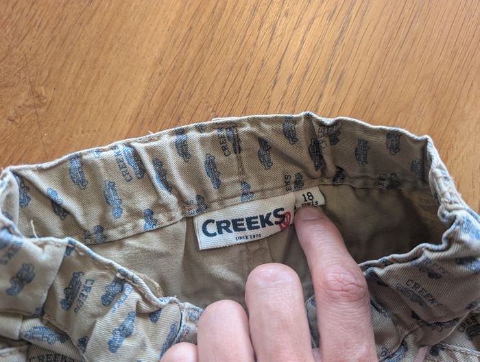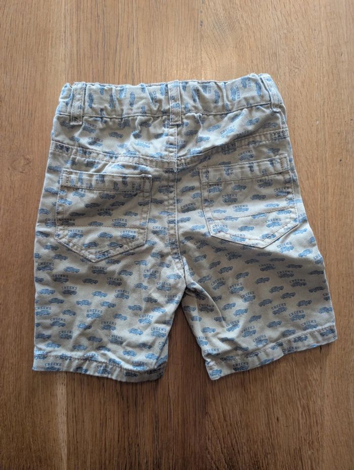Short en jean beige motifs voitures Creeks 18 mois en très bon état.