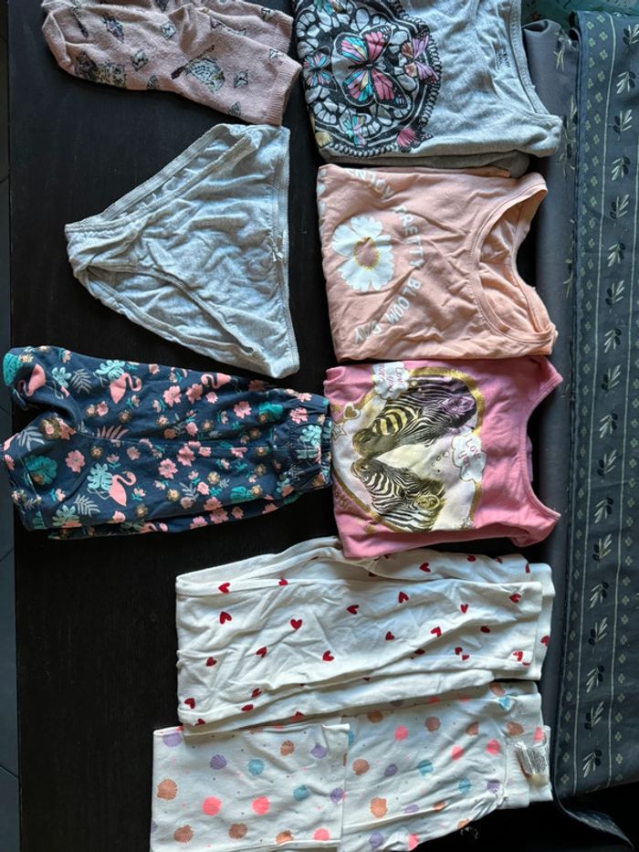 Ce lot se compose le tout en très bon état ⚠️sauf les chaussettes Harry Potter bon état ⚠️ en 10 ans 2 tee-shirts manches courtes kiabi 1 teeshirt manches longues in extenso 1 legging blanc à cœurs ♥️ rouge kiabi 1 pantacourt blanc à coquillages kiabi 1 short Flament rose Auchan 1 culotte grise kiabi nikel Peu légèrement peluches mais très bon état