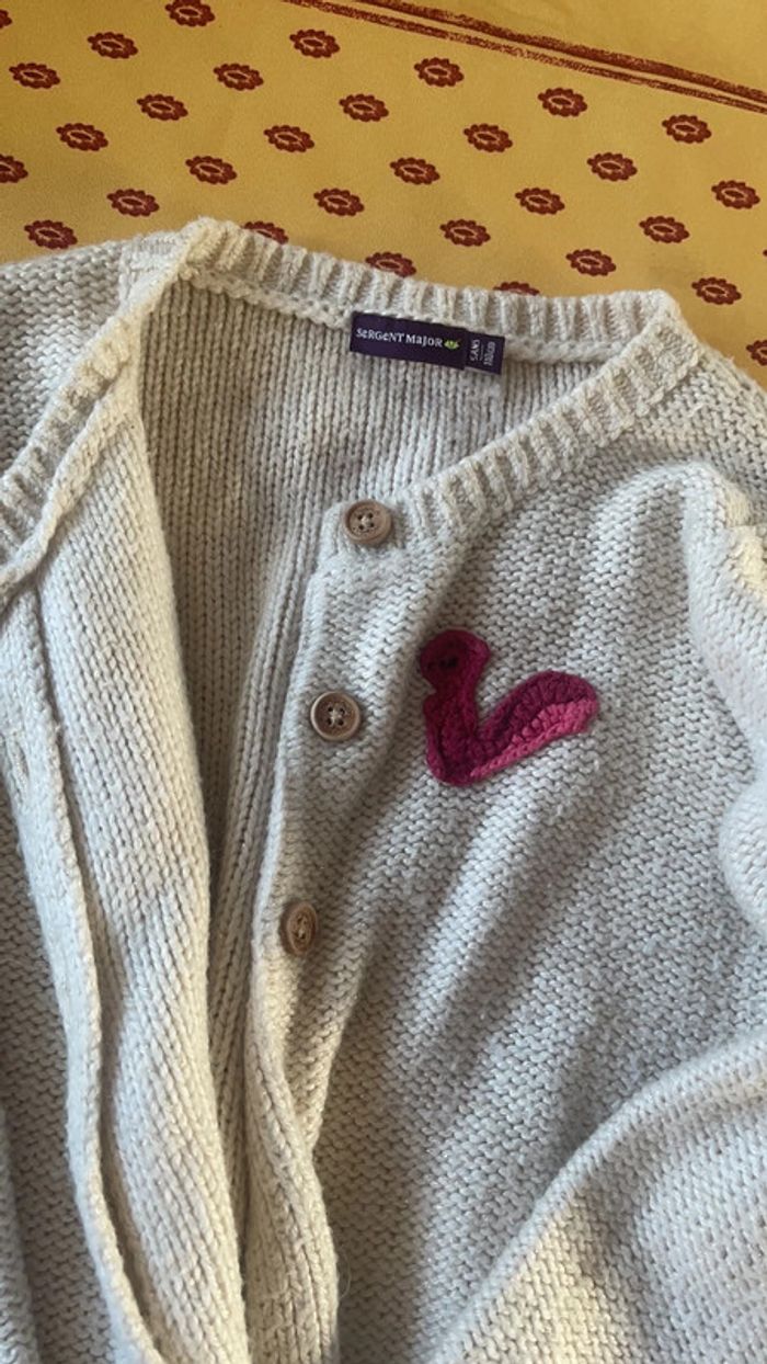 veste beige avec un écureuil sur la poitrine, 5 ans, en parfaite état , se boutonne avec 3 boutons