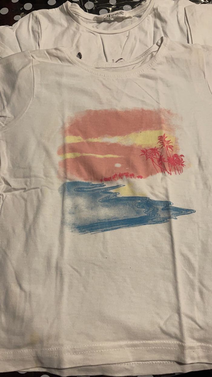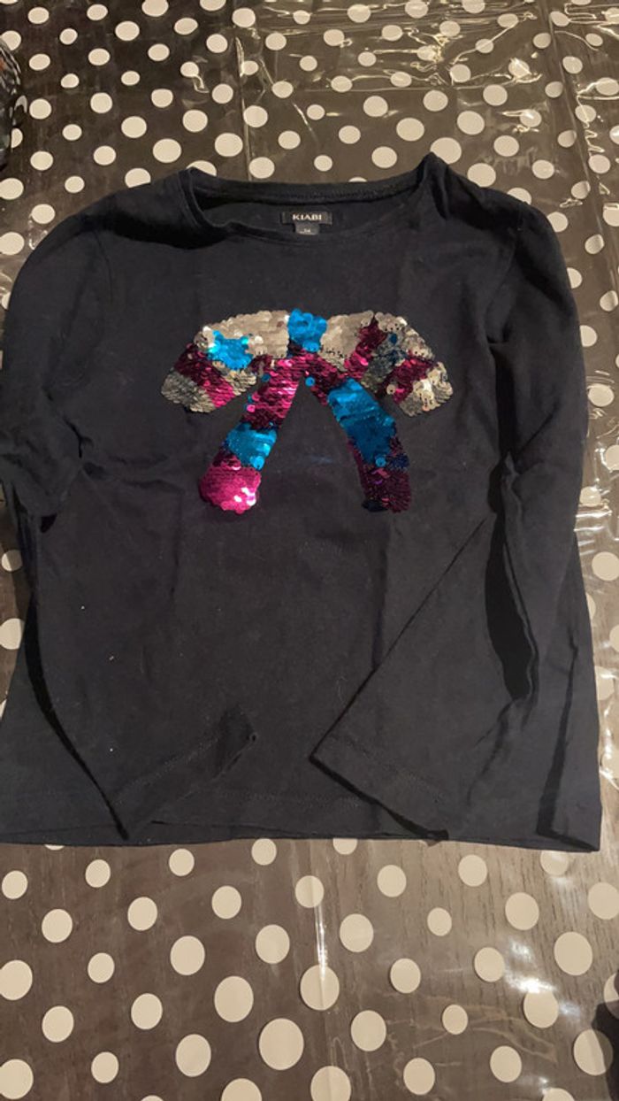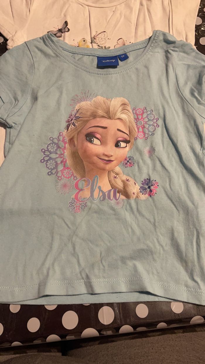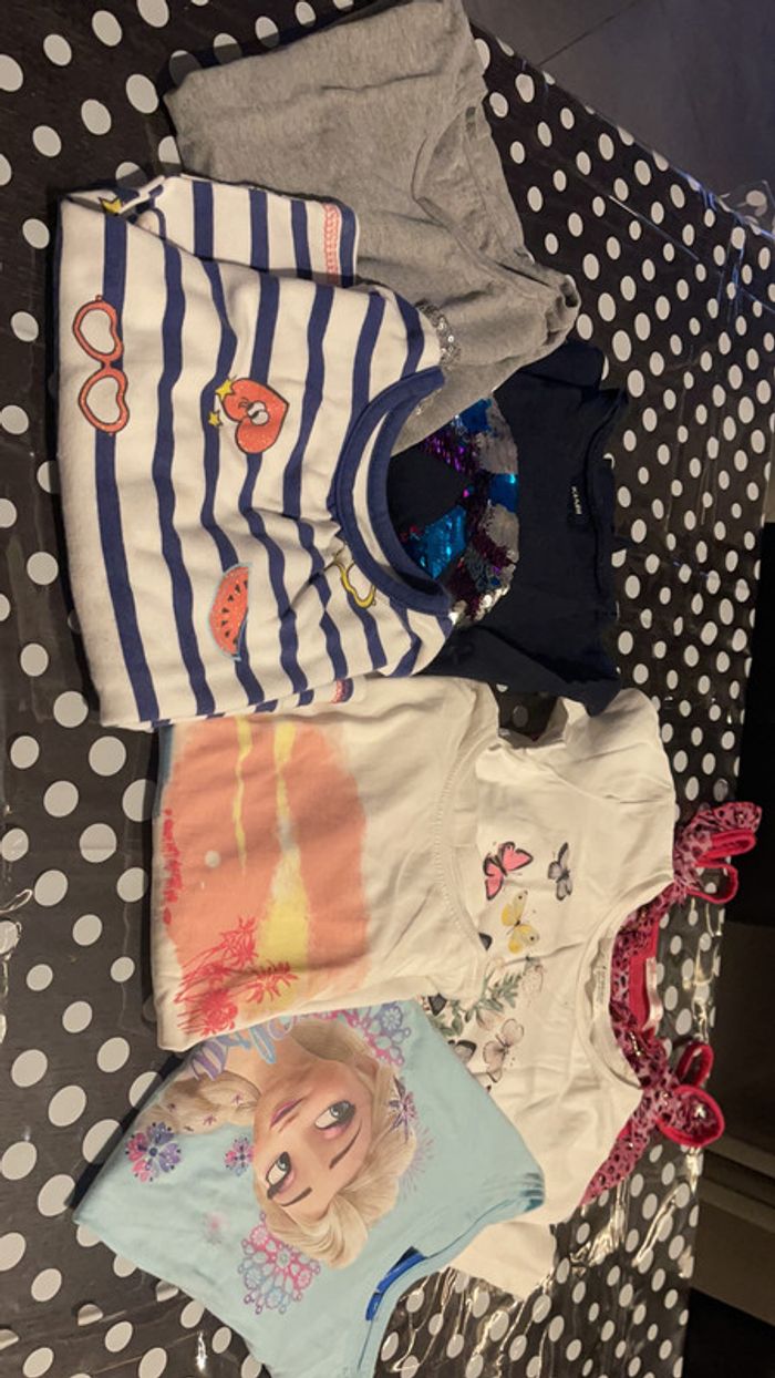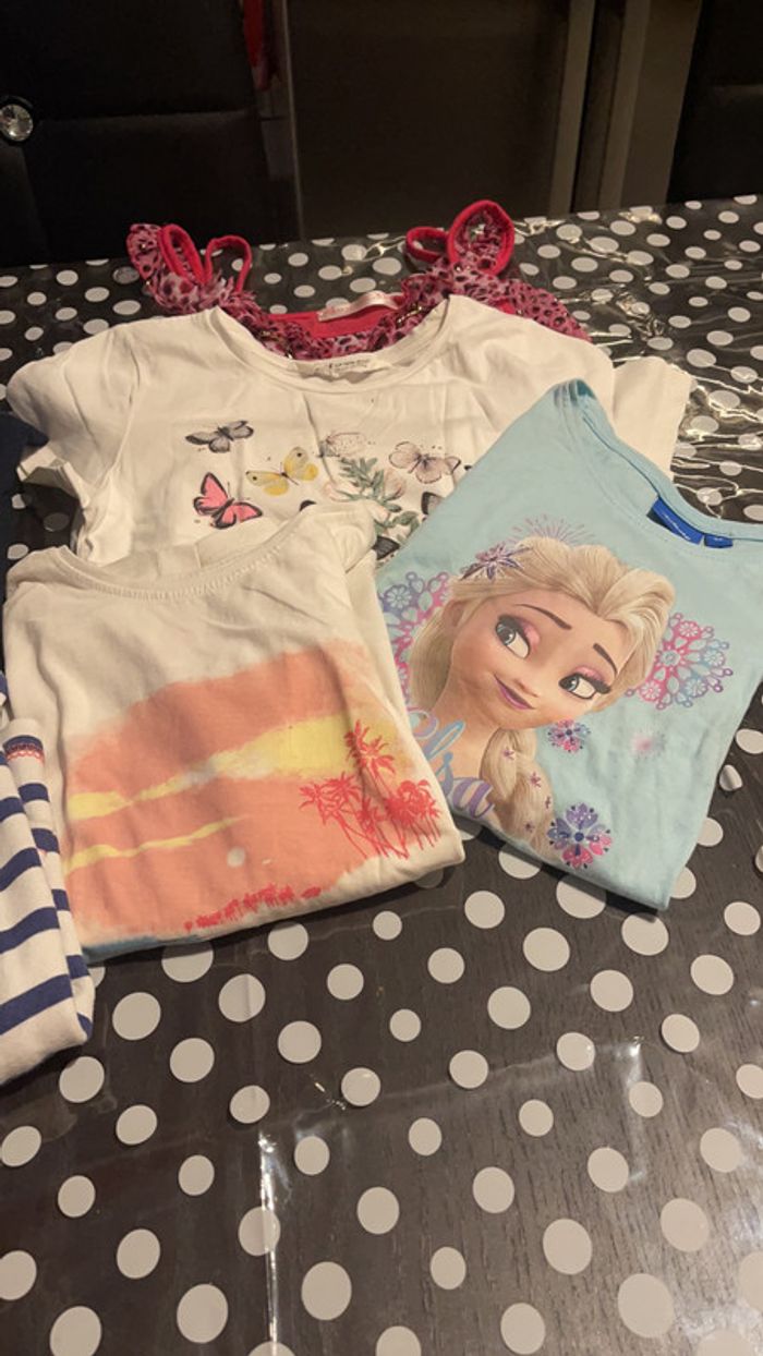 lots de 4 tee-shirts manches courtes et 3 tee-shirts manches longues, le tout en très bon état sauf Elsa des toutes petites taches comme sur les photos donc état satisfaisant, les marques : kiabi, Disney , in extenso et HetM