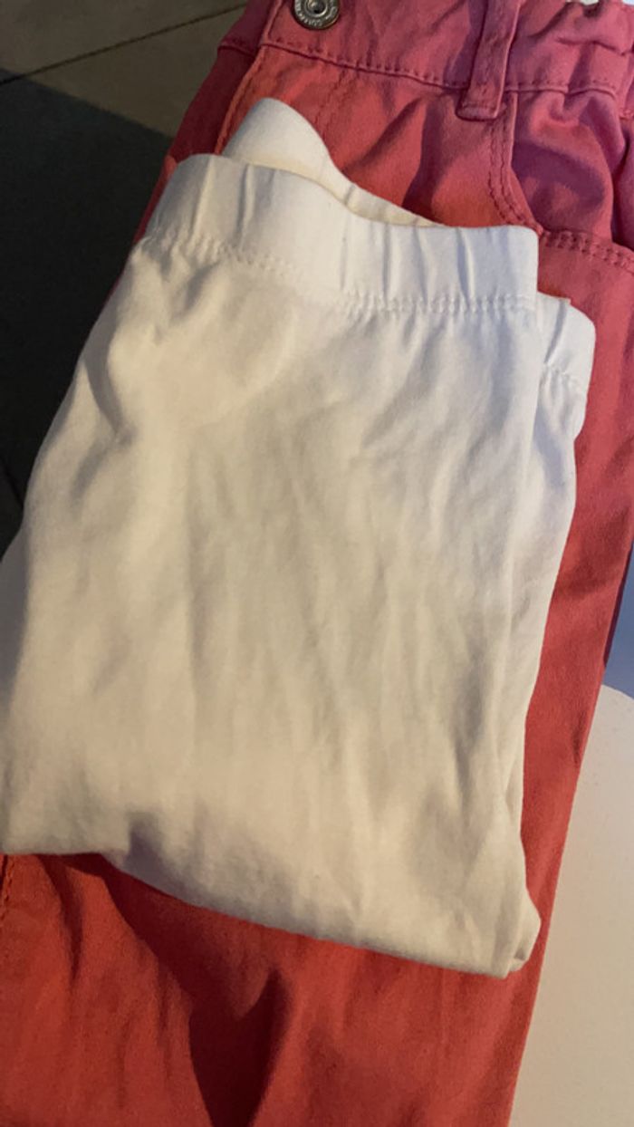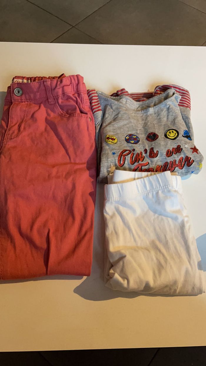 lots: 1 jean rose 7 ans , 1 legging blanc 6 ans et 1 tricot manches longues smile 6 ans