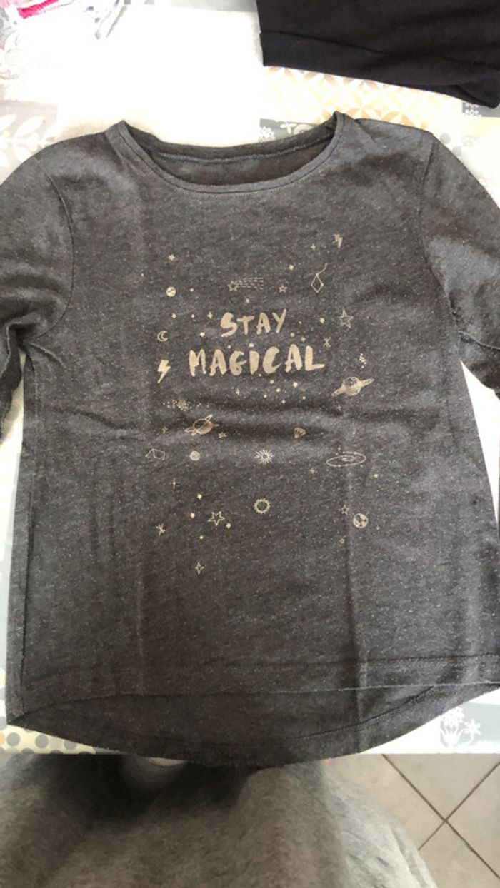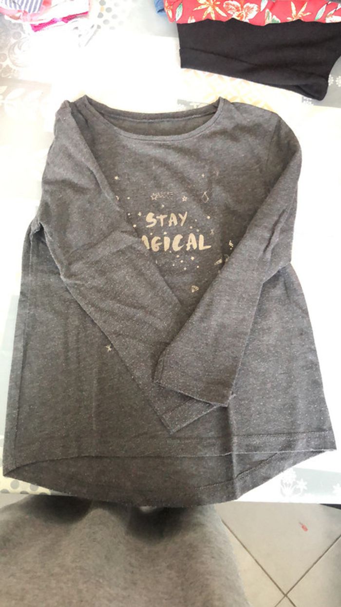 teeshirt manches longues fille, noir et gris,Kiabi en 5 ans