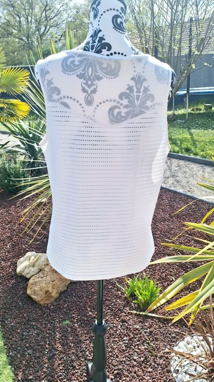Magnifique top d été sans manches/débardeur Marque Mim, taille unique Très belle matière 👍 Voir les mesures en photos Porté 2 fois, il est comme neuf 👌 👌 #femme40_aurore4145 #femme42_aurore4145 #femme44_aurore4145