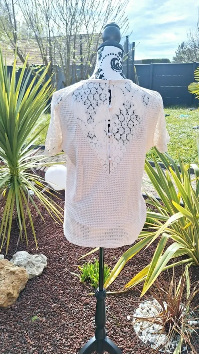 Sublime tee-shirt gaufré avec joli dos en dentelle neuf - photo numéro 4