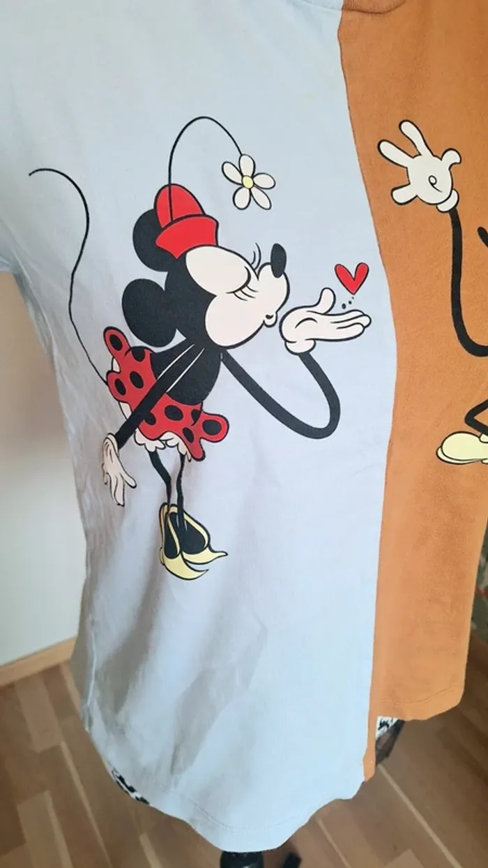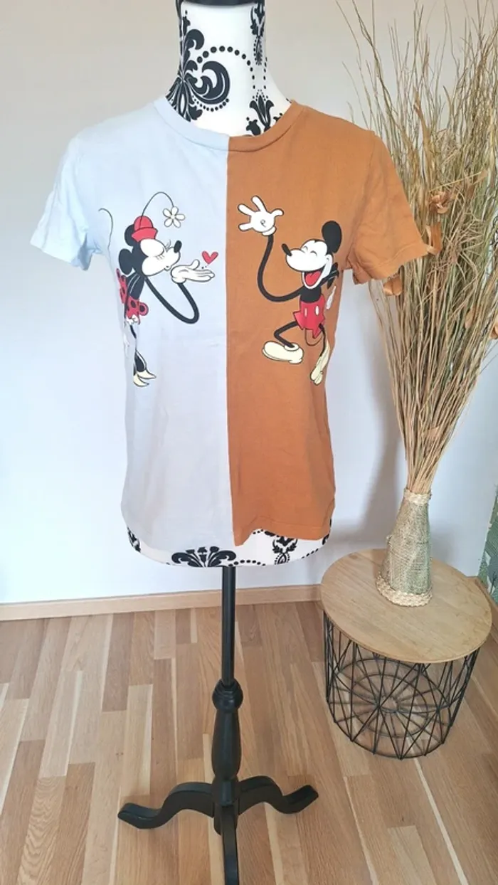 Tee-shirt femme Minnie et Mickey de chez Zara Taille M Couleur marron et bleu clair #femme36_aurore4145 #femme38_aurore4145