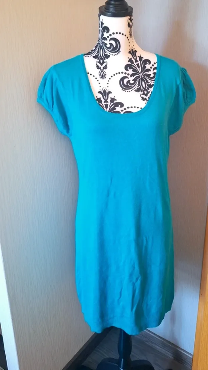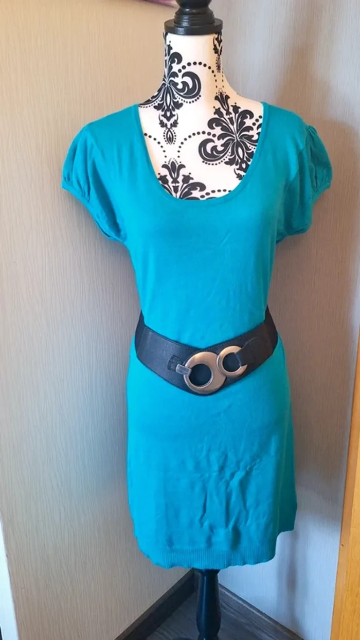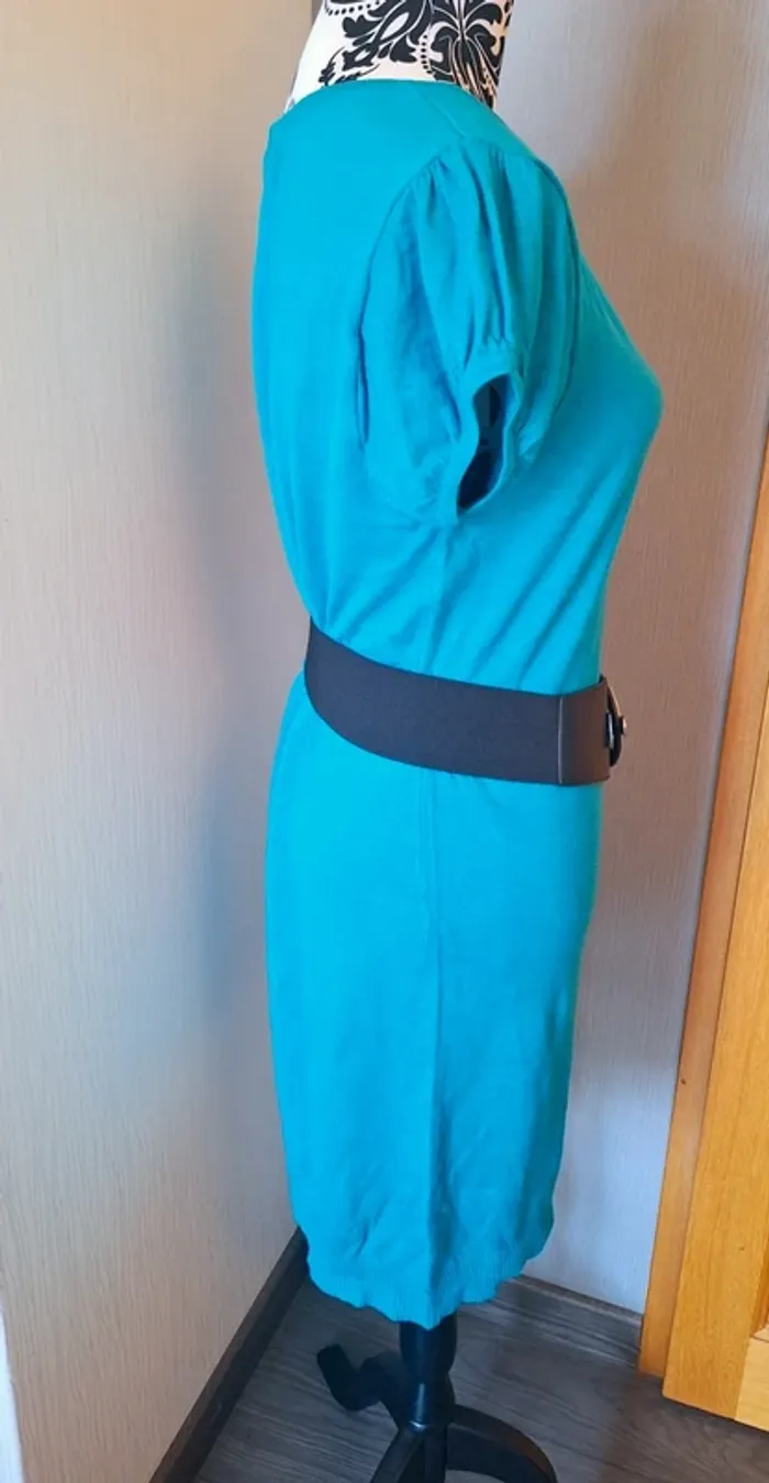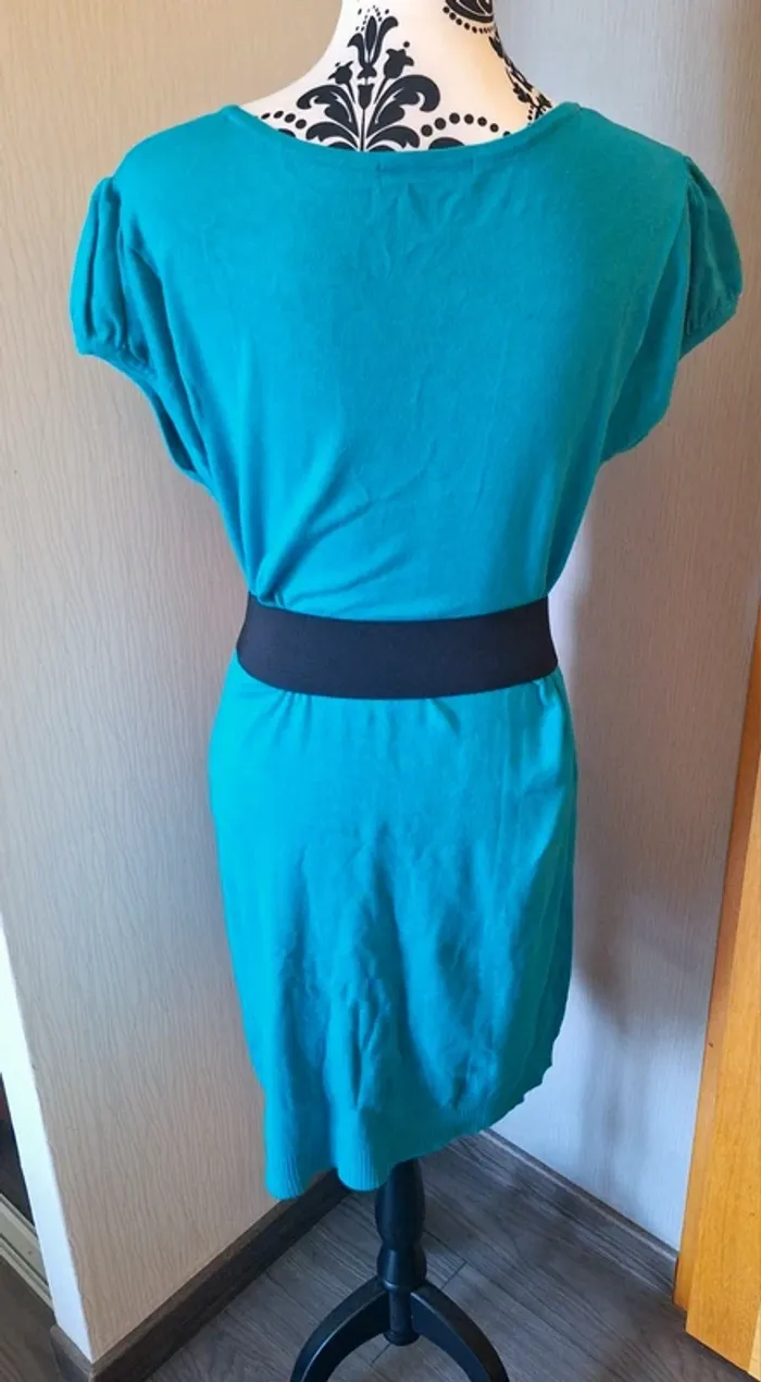 Jolie robe pull femme, légère, elle est idéale en demi saison ⚠️la couleur est vert émeraude/turquoise alors que sur les photos elle fait plutôt bleu... Taille 44 voir mesure longueur 87cm Très bon état 👌 ⚠️⚠️ ceinture non vendue avec ⚠️⚠️ #femme44_aurore4145