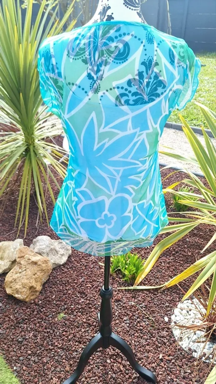 Sublime blouse femme à manches courtes 🩵Allure très chic 🩵Matière légère et transparente 🩵A porter avec un débardeur en dessous ( non vendu avec ) Couleur turquoise et verte 🩵💚 Portée 2 fois elle est comme neuve 👌 Taille 38/40 mesures en photo #femme38_aurore4145 #femme40_aurore4145