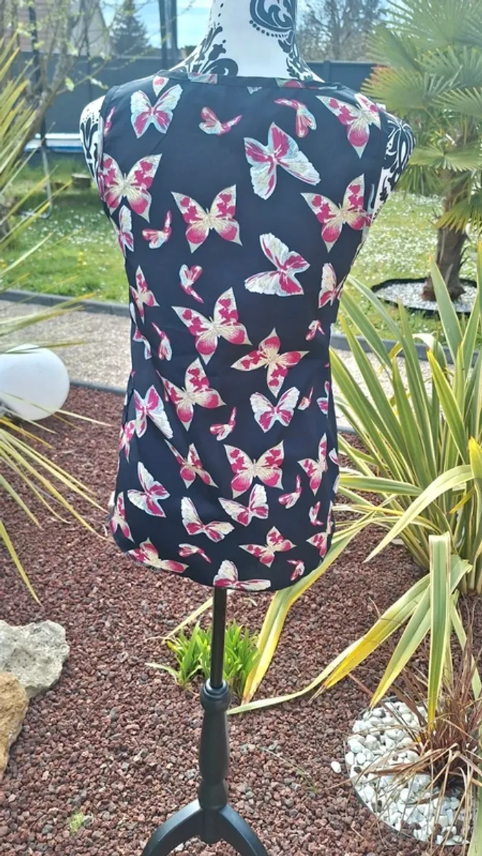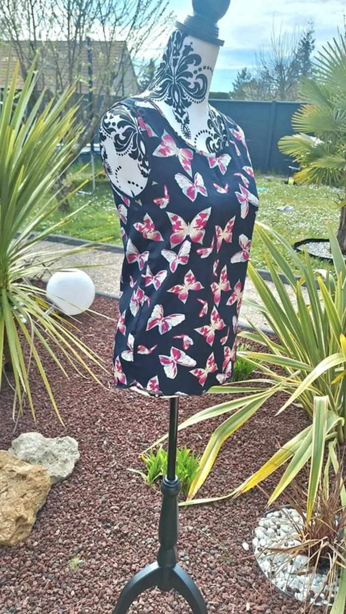 Superbe blouse femme sans manches Motif papillon 🦋 Etiquette coupée mais correspond à du 38 Excellent état 👌 #femme38_aurore4145