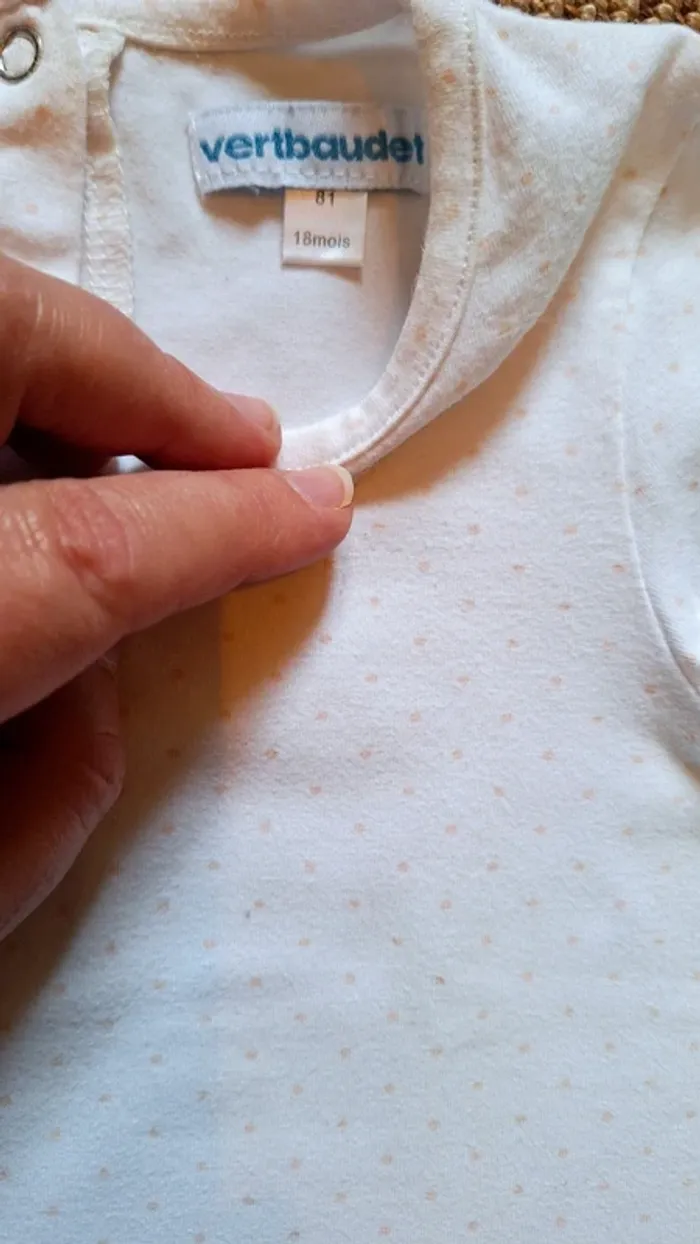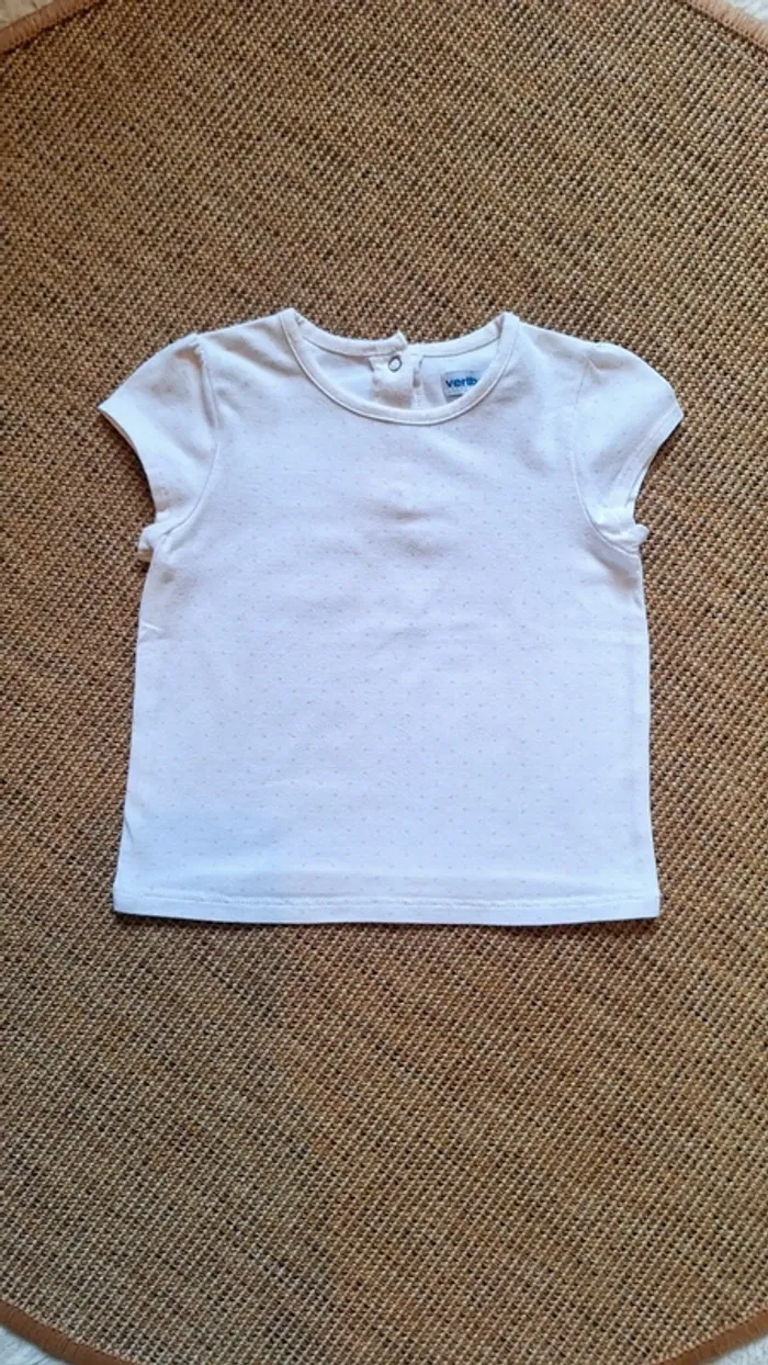 Tee-shirt fille à manches courtes en 18 mois Marque vertbaudet Couleur blanc avec petits points rose/ orangé Très bon état #18moisfille_aurore4145