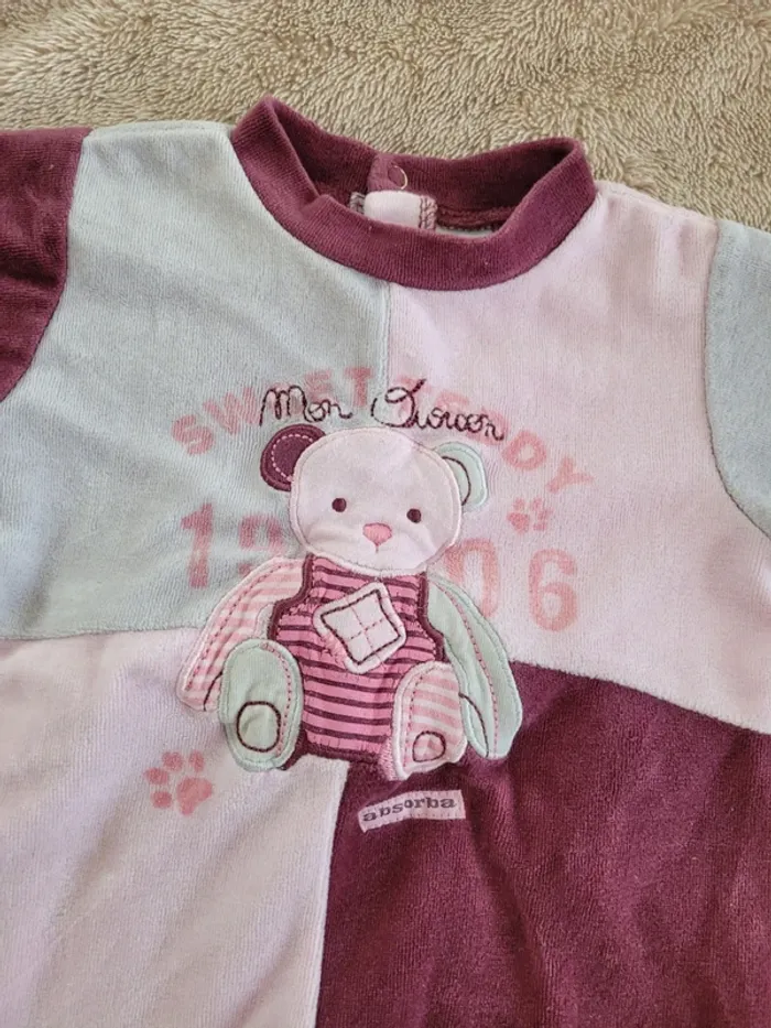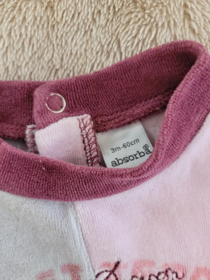 Très bon état mais un peu jauni à l'arrière voir dernière photo #shannyloofille3mois #absorba #fille3mois #pyjamabébé #pyjamavelours #bebe3mois #baby3months