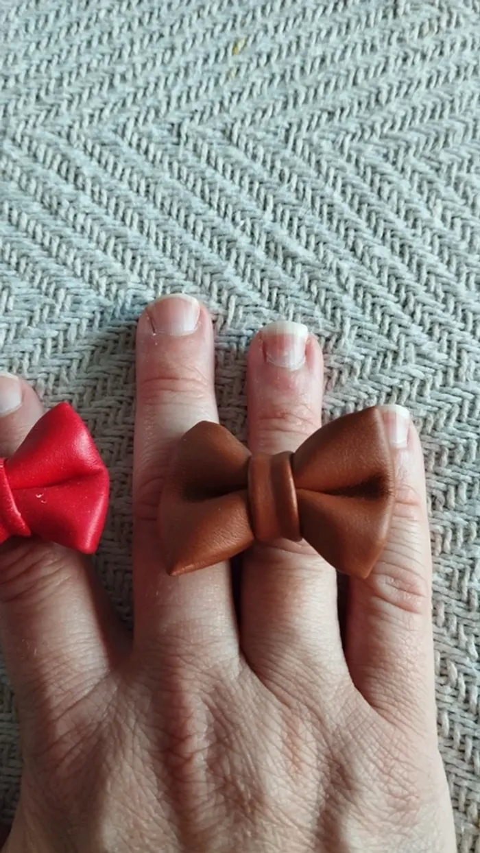 Lot de deux bagues noeud rouge et marron ajustable fantaisie - photo numéro 5