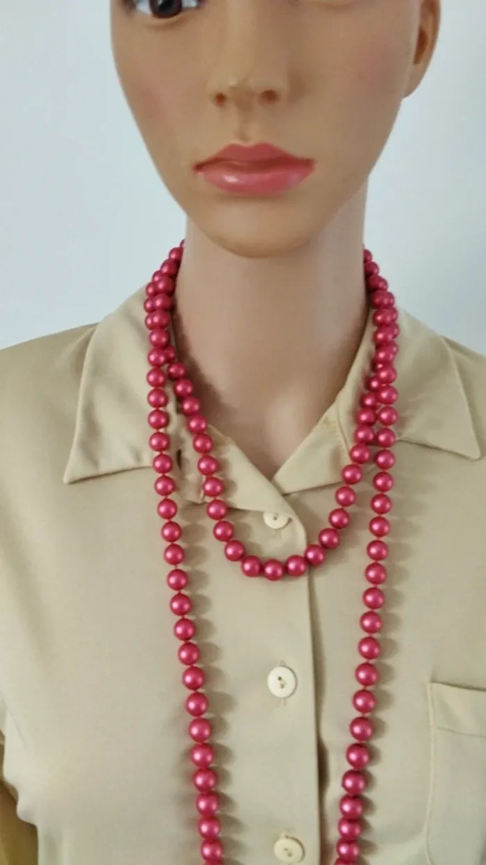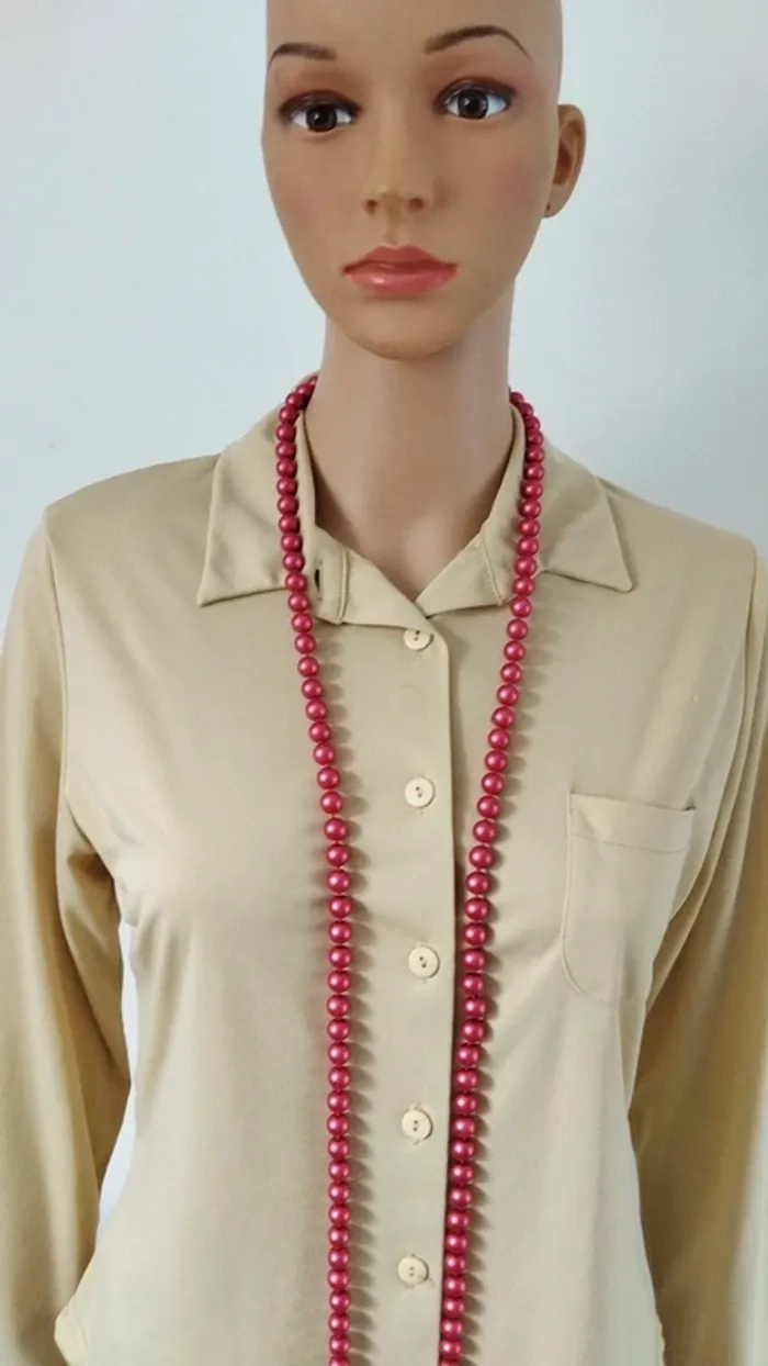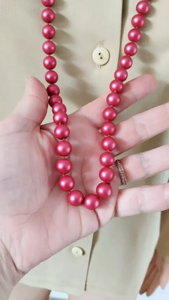 Superbe collier sautoir perles rouge brillante fantaisie femme - photo numéro 5