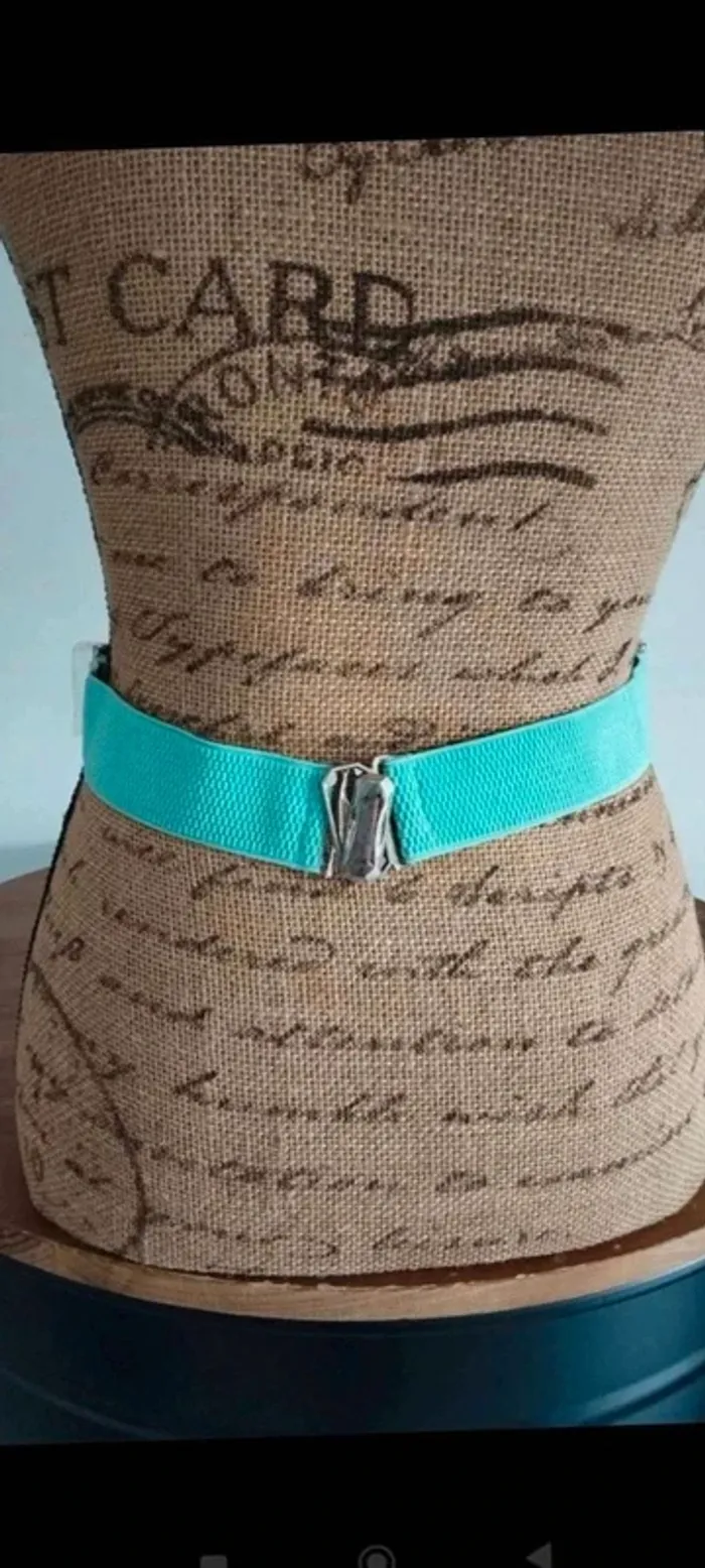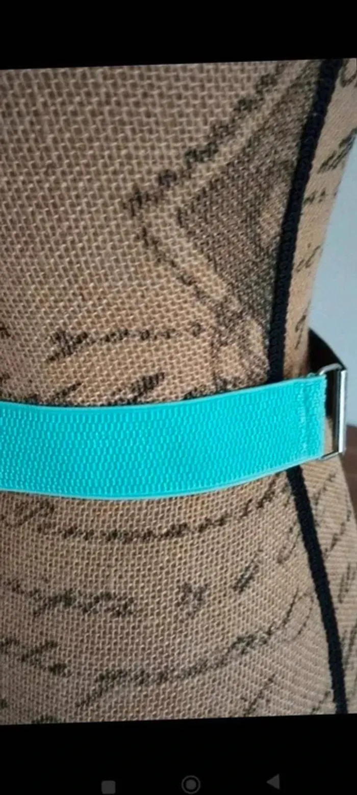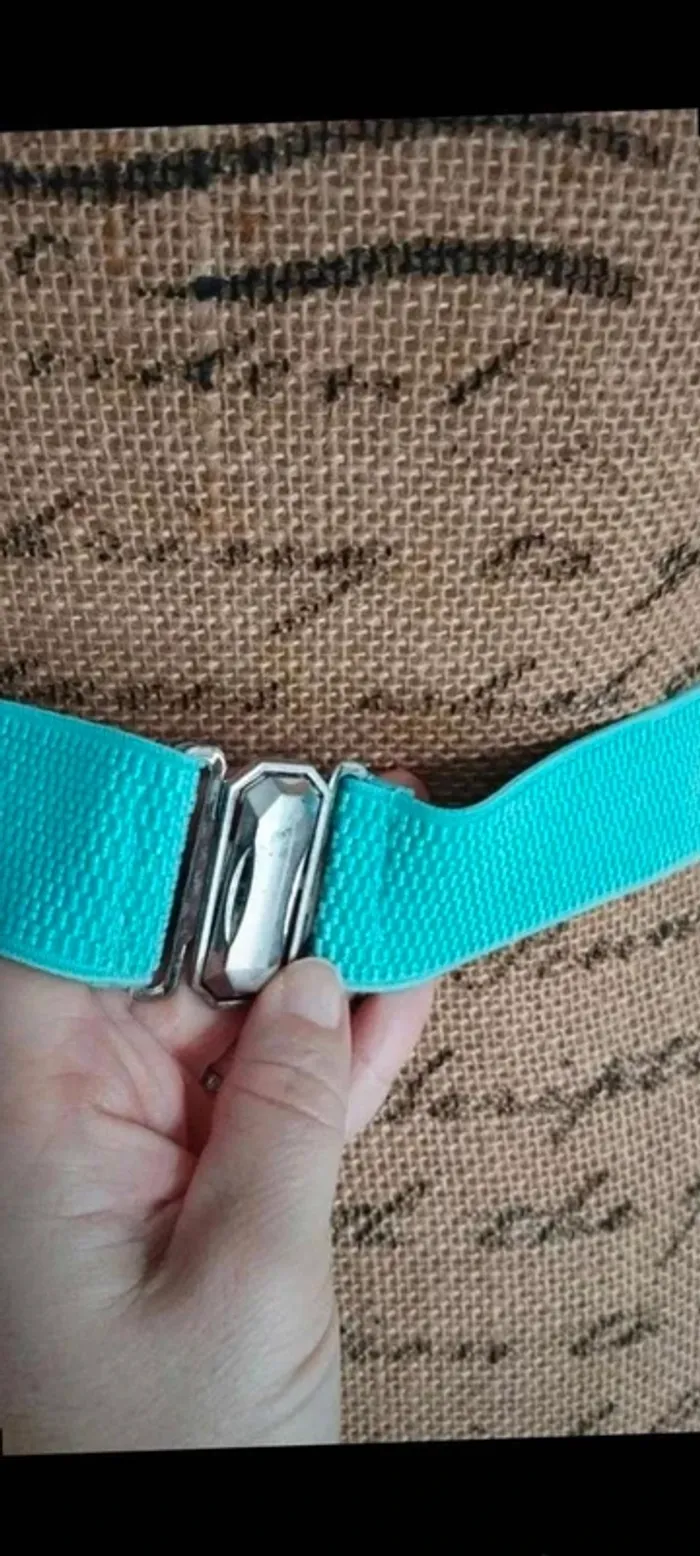 Ceinture  plaque  argenté  bande  verte élastique 70/90  cm - photo numéro 5
