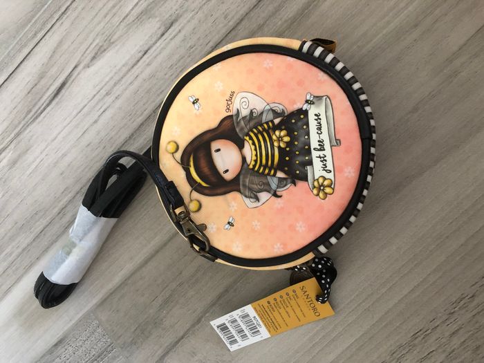 Ce sac bandoulière rond Gorjuss est orné du motif Bee-Loved (Just Bee-Cause) dans les tons pêche, abricot et jaune doré. Il est également orné de pois et de fleurs.