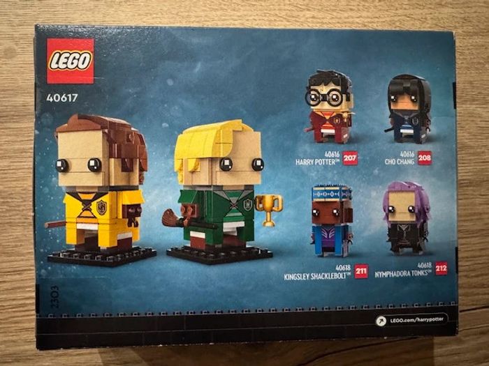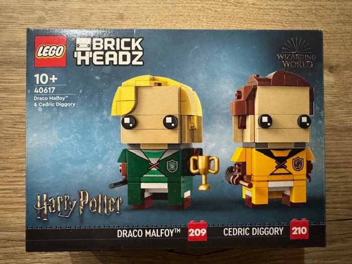 Drago Malefoy et Cedric Diggory version LEGO® BrickHeadz™ (40617) – Construisez les 2 personnages portant l’uniforme de Quidditch™ de leur maison respective, et exposez-les en plaçant dans leurs mains la Coupe des Quatre Maisons et leurs 2 balais
