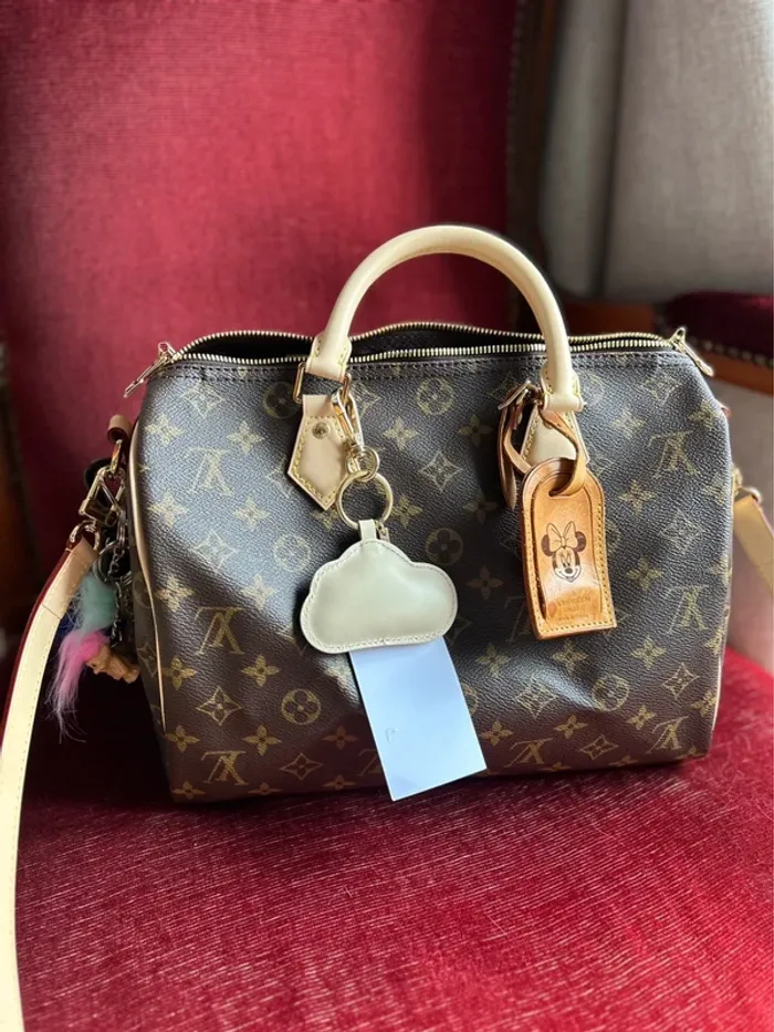 Superbe porte-clé de la marque CLUOH avec son pochon cadeau « La marque Cluoh imagine et conçoit une collection de sacs ainsi que d'accessoires au design élégant et contemporain. En résulte notamment ce porte-clés. Ce dernier se compose d'un anneau en métal doré agrémenté d'un mousqueton ainsi que d'un empiècement en cuir lisse blanc en forme de nuage. La touche de poésie qui ponctuera votre trousseau avec goût. » DÉTAILS DU PRODUIT Dimensions : 13,5 cm Cuir Forme nuage Superbe à mettre en bijoux de sac sur un sac speedy par exemple Valeur boutique : 36 euros Acheté chez Printemps Rennes Alma Référence : PTE CLES NUAGE BLANC-VANILLA-VANILLA | 4760826