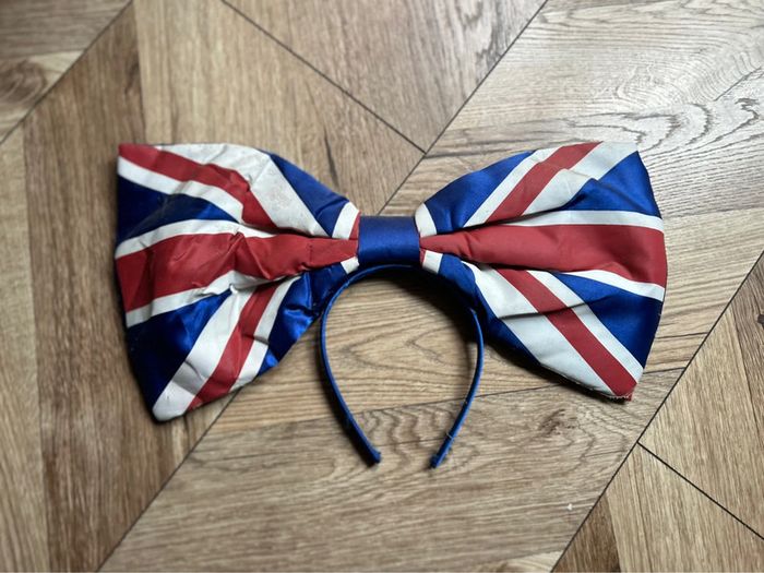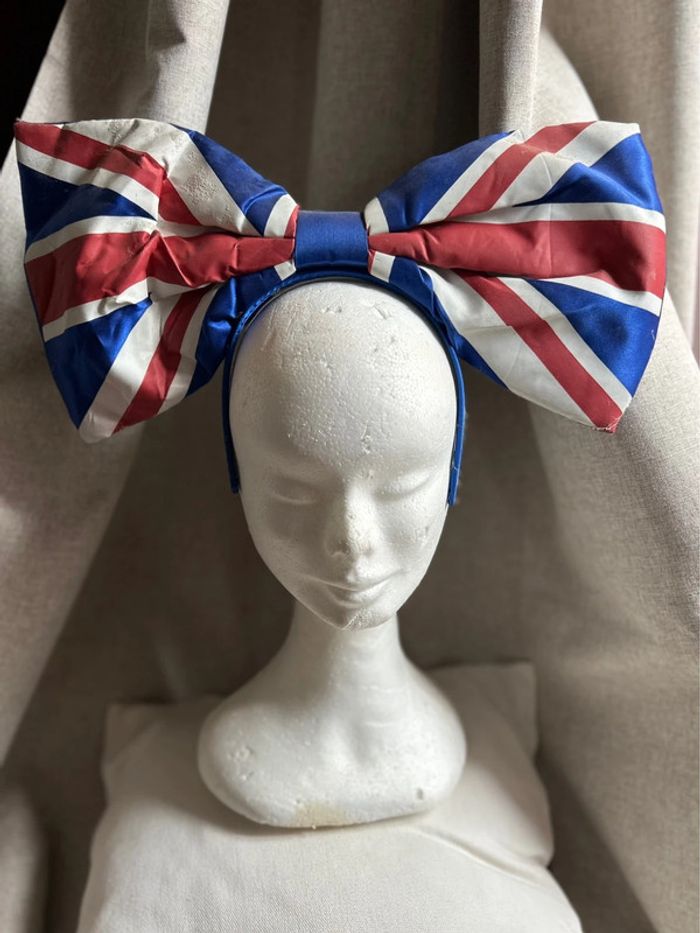 Serre tête drapeau américain années 1970 Pour faire pompom girl ou pour déguisement Arceau en plastique et noeud en matière synthétique 100 % vintage Vendu en l’état, (noeud par endroit abîmé)