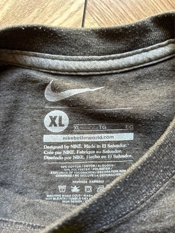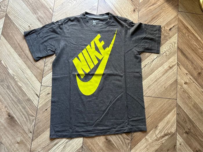 📢 T-shirt Nike Gris Anthracite avec Logo Jaune Fluo - Taille M/L (Étiquette XL) 📢 Ce t-shirt Nike est un essentiel pour votre garde-robe décontractée ou sportive ! Arborant le célèbre logo Nike en jaune fluo sur un fond gris anthracite, il offre un style moderne et dynamique. Bien que l'étiquette indique une taille XL, ce t-shirt taille plutôt comme un M ou un L, il est légèrement extensible pour s'adapter confortablement. Caractéristiques : * Marque : Nike * Couleur : Gris Anthracite avec logo jaune fluo * Taille : Indiqué XL, mais convient plutôt pour un M-L (légèrement extensible) * État : Excellent (peu porté) * Matière : 50% Coton / 50% Polyester (d'après l'étiquette) - Confortable et respirant. * Fabriqué en : El Salvador (selon l'étiquette) Idéal pour vos séances de sport, vos sorties décontractées ou simplement pour un look sportswear. N'hésitez pas si vous avez des questions ou si vous souhaitez d'autres photos !