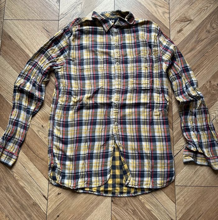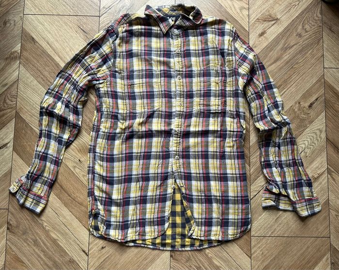 Chemise Lee à carreaux et rayures Superbe chemise style vintage de marque LEE « for premium quality and a smarter fit » Taille M Matière très douce et chaude à la fois (entre le Coton et la flanelle) Intérieur carreaux noir et jaune style carreaux de Vichy, Personnellement, je la portais aussi bien des deux côtés.
