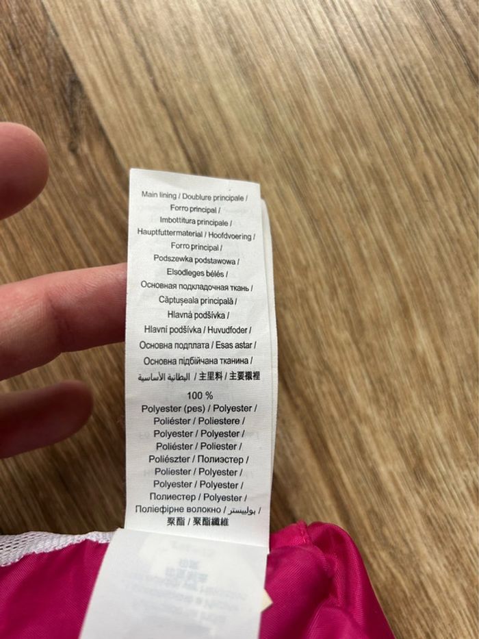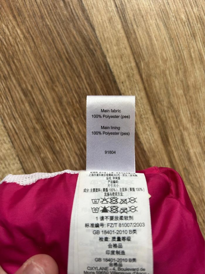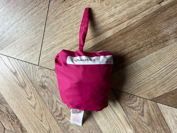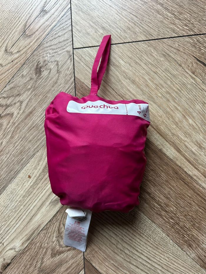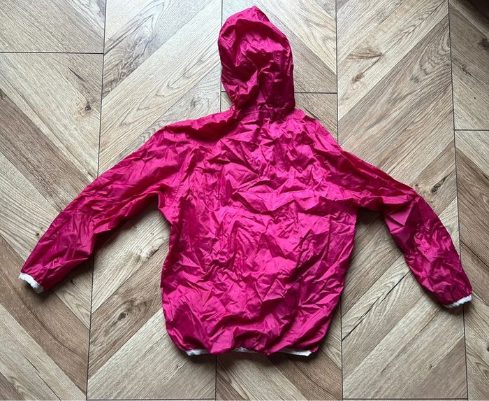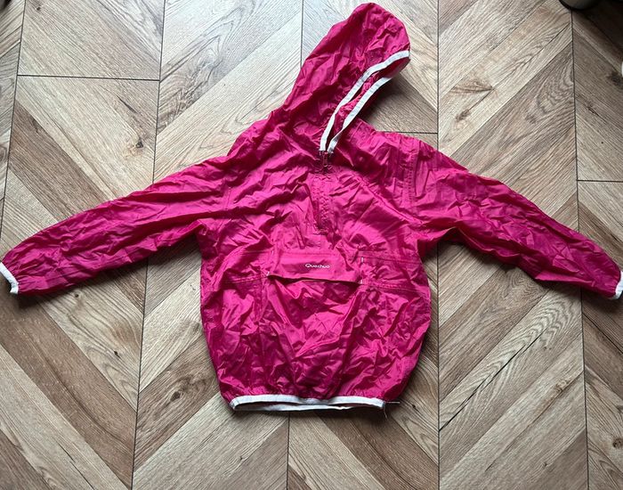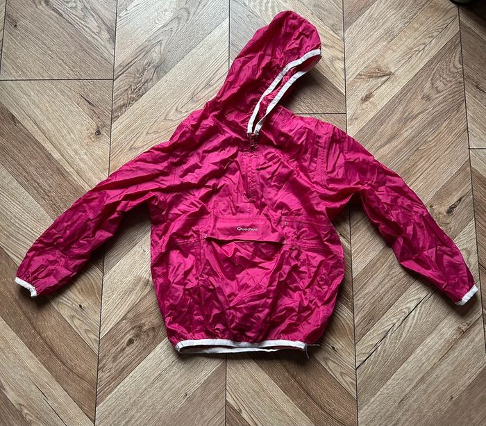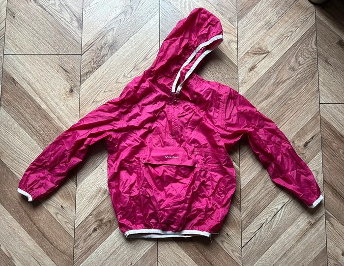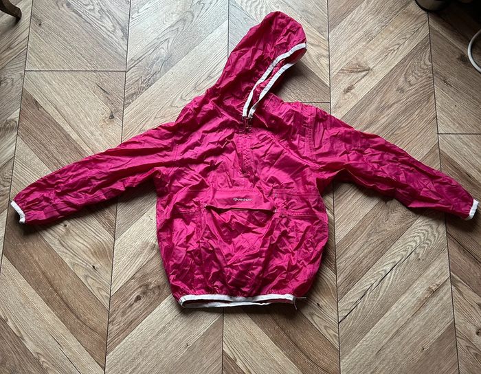Coupe-vent à capuche Marque Quechua coloris fushia Taille 4 - 6 ans Pratique avec son rangement grâce à la Poche centrale, fermeture par scratch