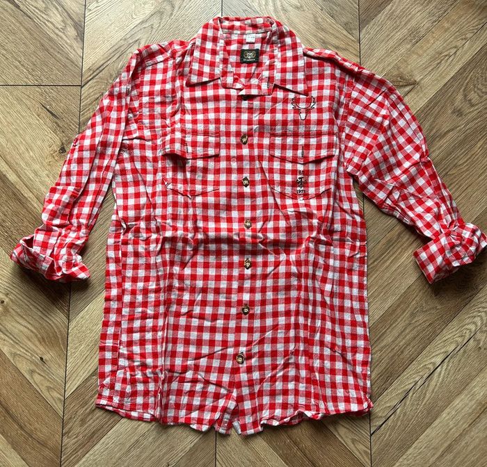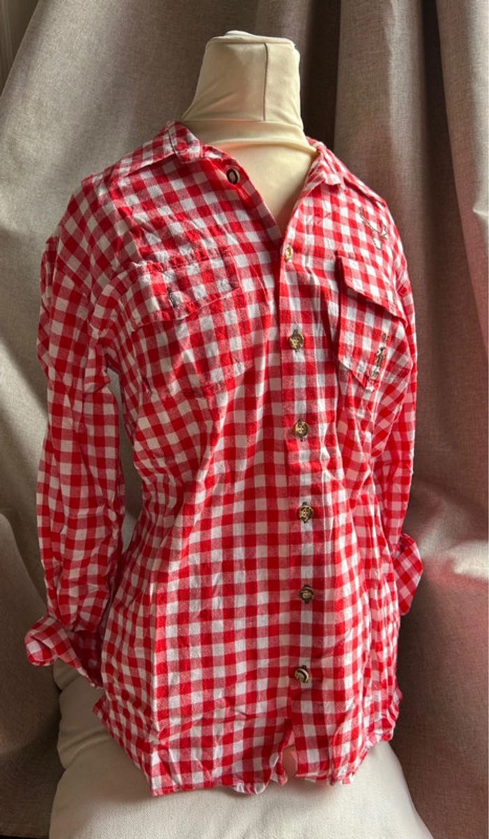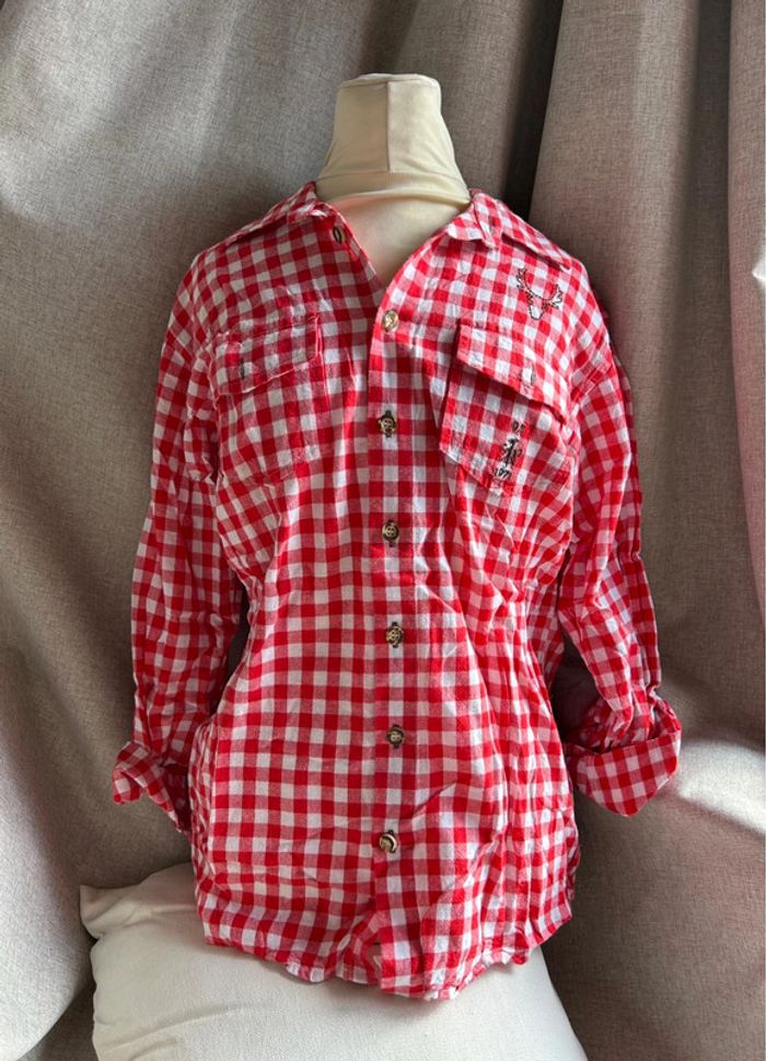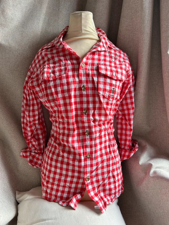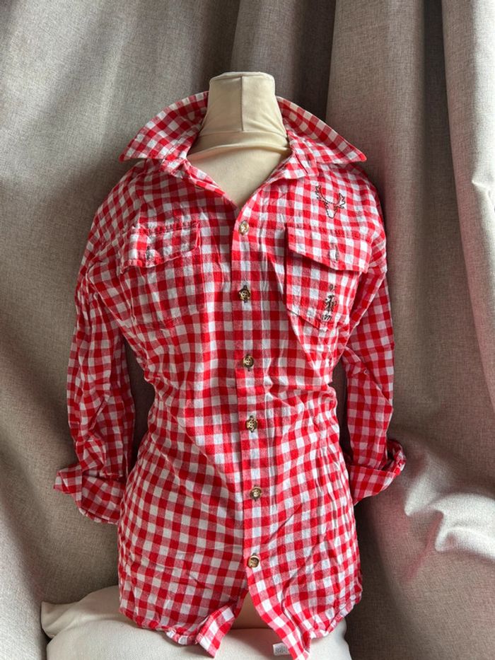 Chemise vintage 1970 À broderies Style vintage à carreaux de Vichy rouge et blanc Taille 38/40 158/164