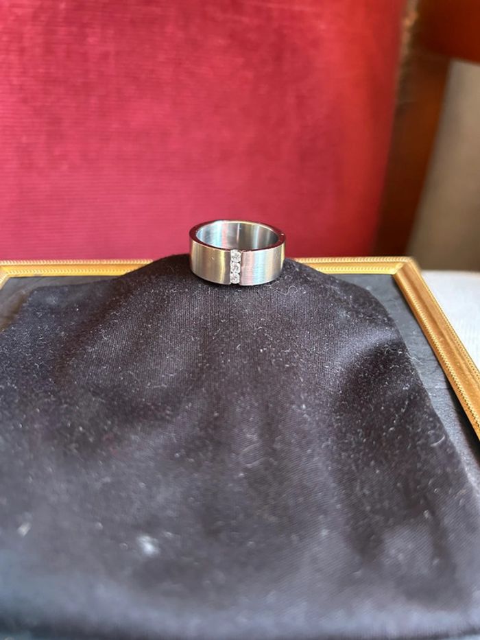 Bague fantaisie acier inoxydable avec trois petits zirconium Taille 58
