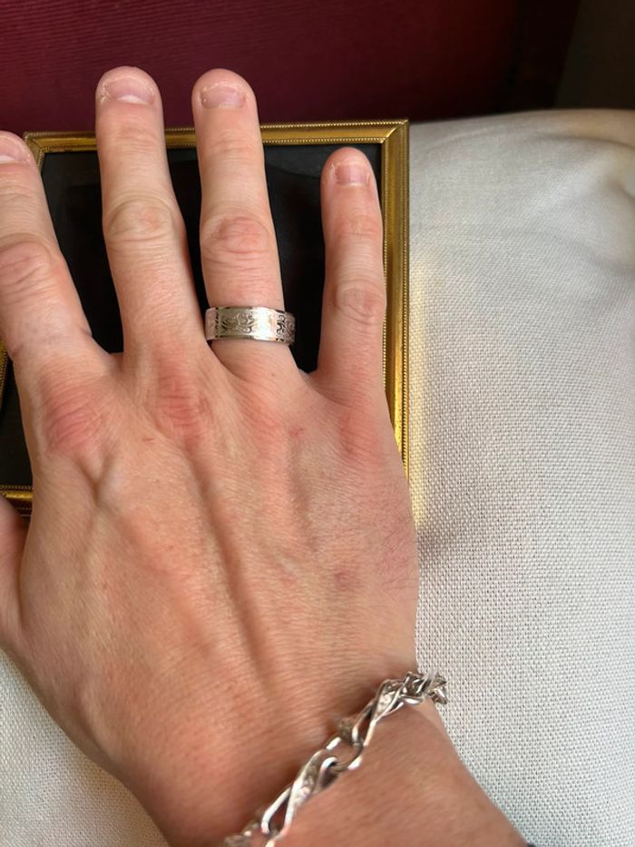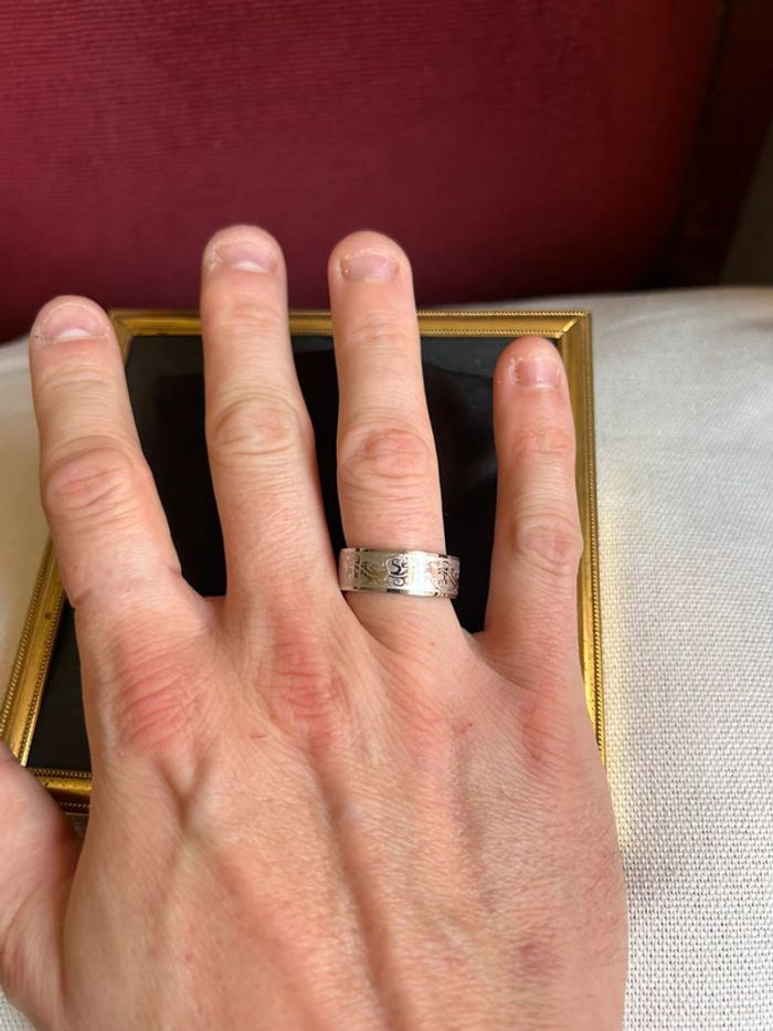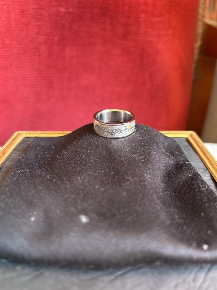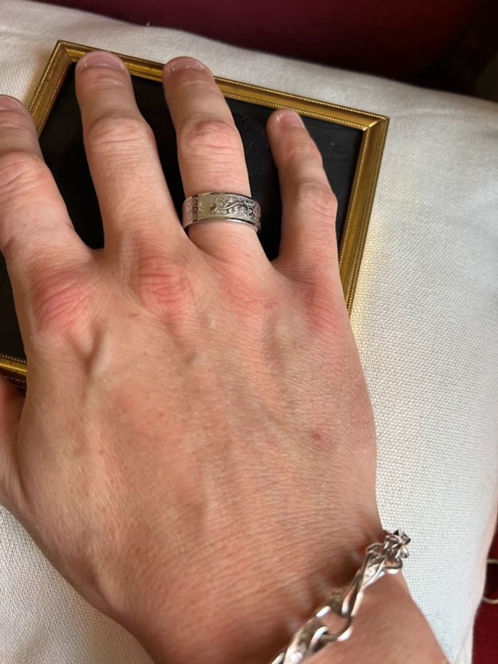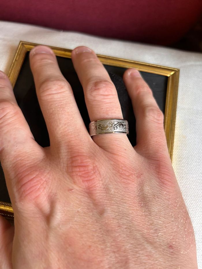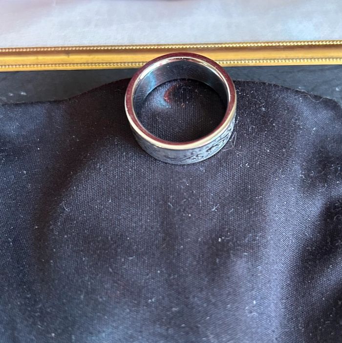 Bague fantaisie en acier inoxydable Taille 58 Superbe travail de gravure avec des petites salamandres 🦎