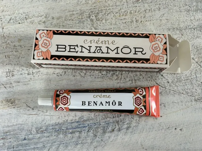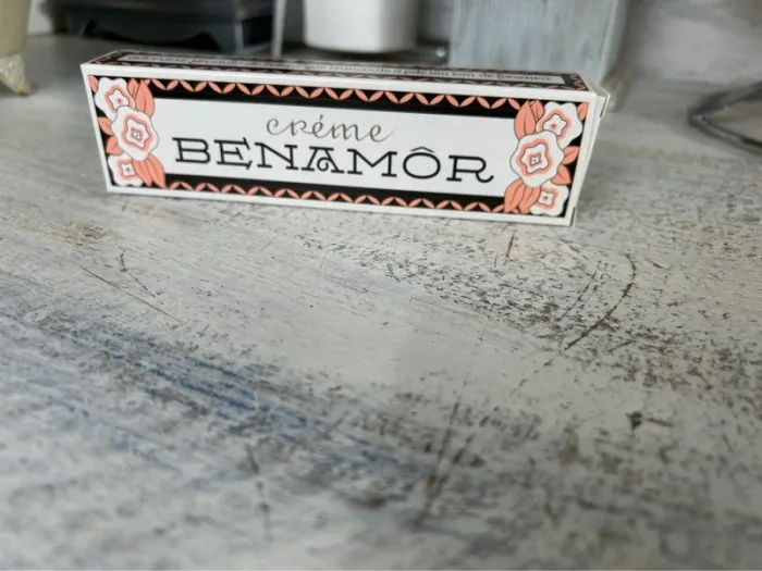 Crème visage hydratante BENAMÔR neuve Crème BENAMÔR - Neuf - Fabrica Nally - Soin hydratant visage Portugal Mettez en vente cette crème hydratante de la marque portugaise BENAMÔR, une véritable pépite de la cosmétique vintage. * Marque : BENAMÔR - Fabrica Nally * Type de produit : Crème pour le visage hydratante. * Quantité : 40 ml. * Détails : Cette crème, reconnaissable à son packaging rétro et élégant, est réputée pour ses propriétés hydratantes et son odeur délicate. Elle est connue pour aider à adoucir la peau et atténuer les petites imperfections. * État : Produit neuf, jamais ouvert. Le tube n'a jamais été percé (voir photo). Vendu dans sa boîte d'origine. * Idéal pour : Convient à tous les types de peaux, pour celles et ceux qui aiment les soins de qualité, au charme intemporel. Offrez-vous un petit bout de la tradition cosmétique portugaise !