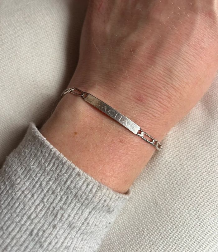 petite gourmette en argent gravée du prénom « SACHA » Longueur 18 cm Très bon état