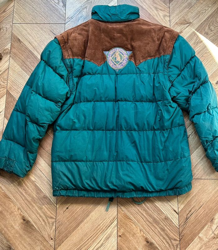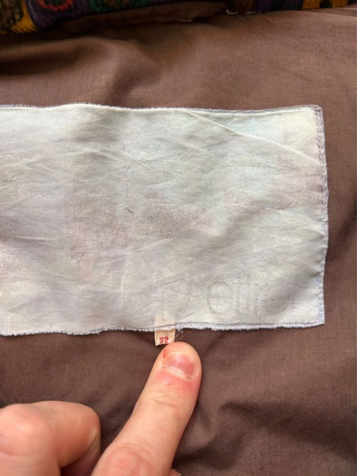 Manteau Etirel vintage Manches amovibles pour en faire une doudoune Capuche intégrée camouflée dans une poche, Le manteau est rembourré en plumes 🪶 Le haut de la poitrine est en daim Quelques petits trous et tâches (voir photos) Taille 52 (correspond à un L environ, voir dimensions avant d’acheter) Dimensions : Épaule à épaule : 57 cm Aisselle à aisselles : 60 cm Hauteur jusqu’au col : 77 cm Hauteur jusqu’à l’épaule : 73 cm Largeur : 60 cm Manches : 60 cm